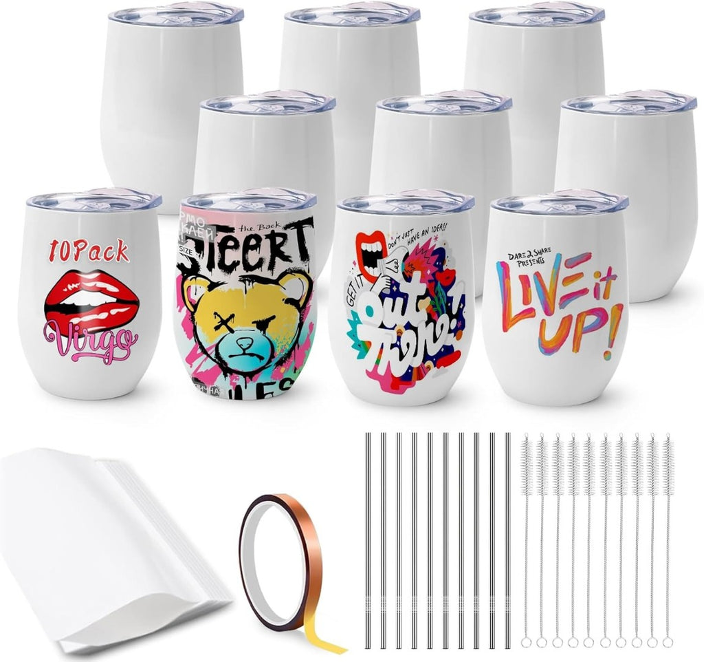 Effortless Printing: This set of 10, 12oz straight sublimation tumblers is designed with a sleek, polymer-coated surface, ensuring smooth dye-sublimation printing with minimal risk of errors—even for large, intricate designs. These tumblers provide the perfect blank canvas for creating truly unique and personalized masterpieces.