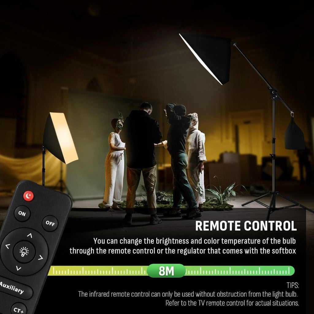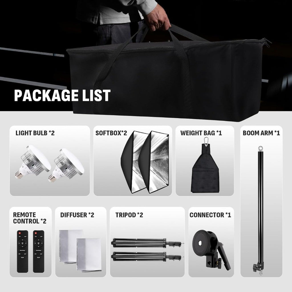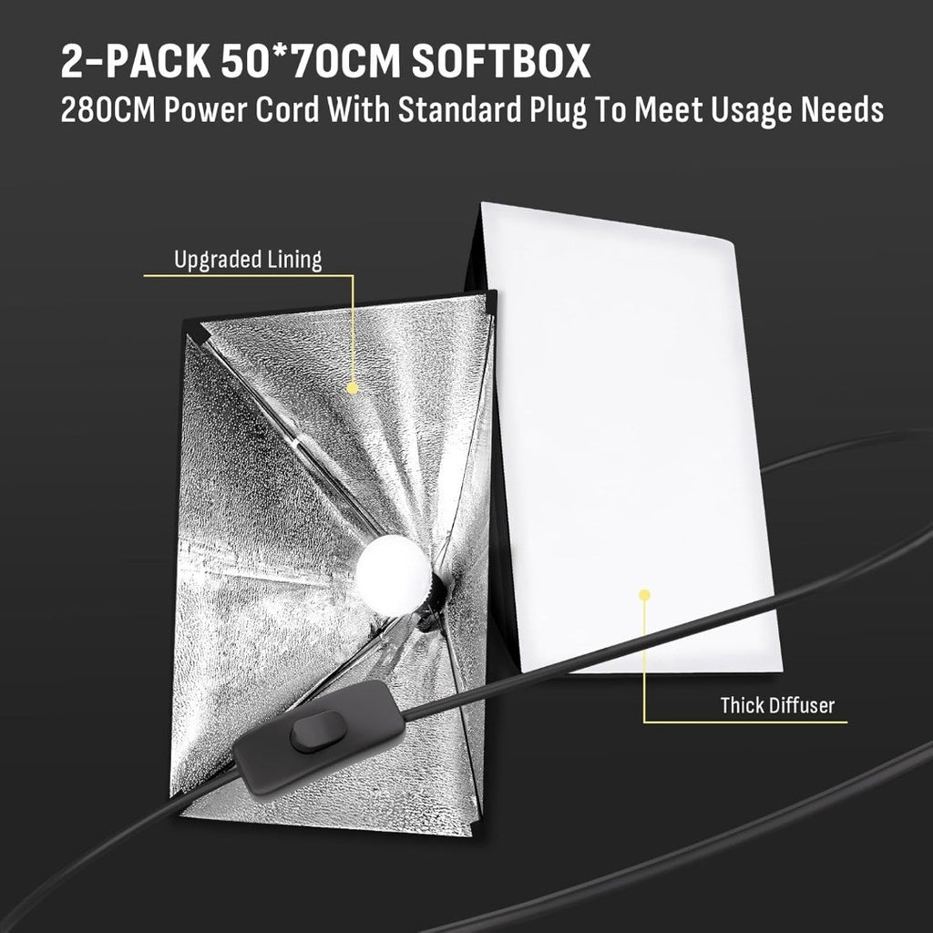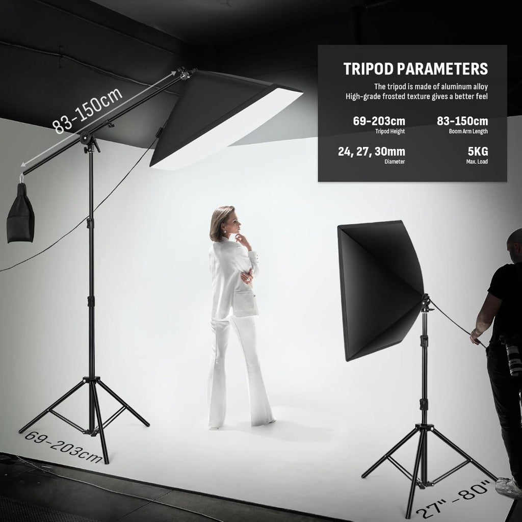 Niceveedi 50 * 70CM Photography Light Kit, 2-Pack 2700K-6500K Softbox with 85W Bulbs & 150CM Boom Arm, Video Light with 2 * 203CM Tripod, for Video Recording/Live Streaming/Portrait