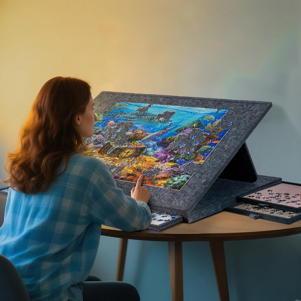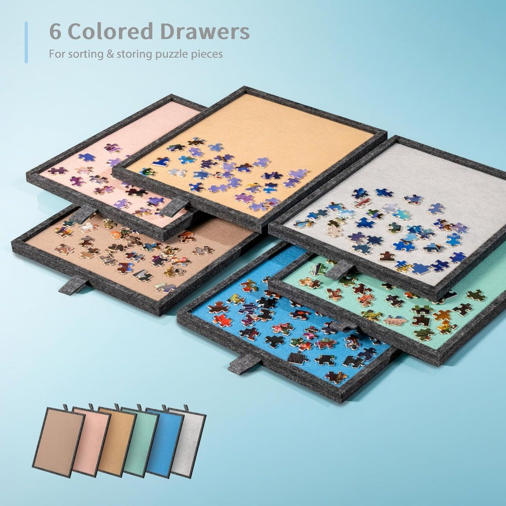 Becko US 1500 Piece Tilting Jigsaw Puzzle Board with 6 Colored Drawers & Cover, Puzzle Table with Storage for Adults, Lightweight & Portable, for Jigsaw Puzzles 1500 Pieces (Dark Gray)