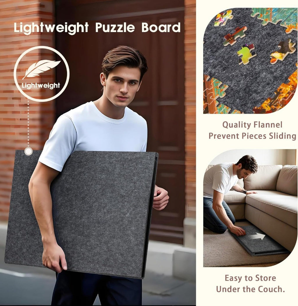 Super Lightweight Puzzle Board - Lavievert puzzle boards is processed out of premium felt fabric, thus is not easy to bend. The surface of puzzle board gives an excellent texture of suede, ensuring enough friction to stop the puzzle pieces from sliding around, even if the board is tilted to a certain angle. Raised edges also effectively prevent puzzle pieces from slipping and missing.