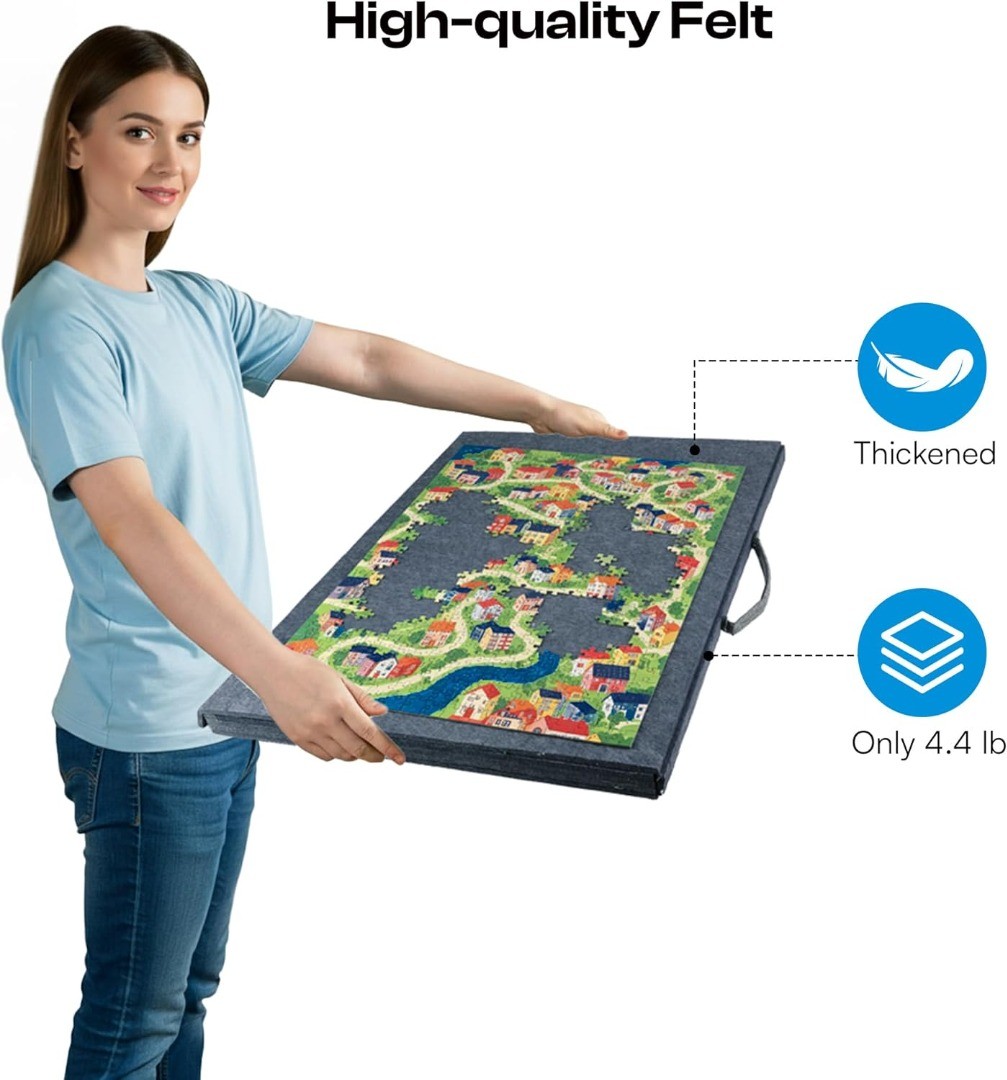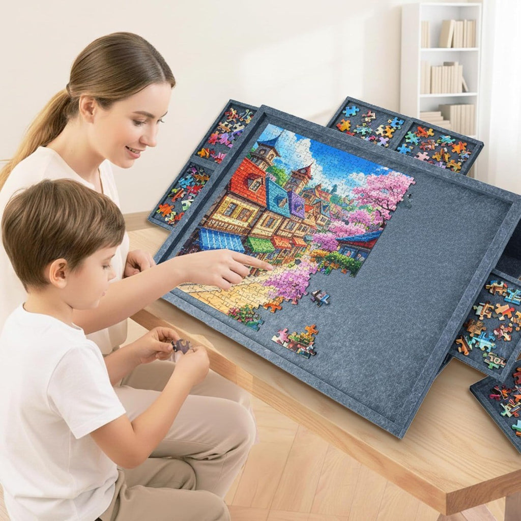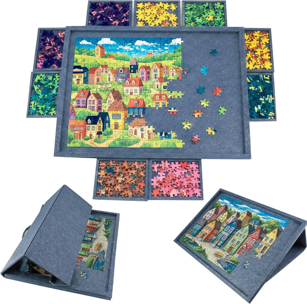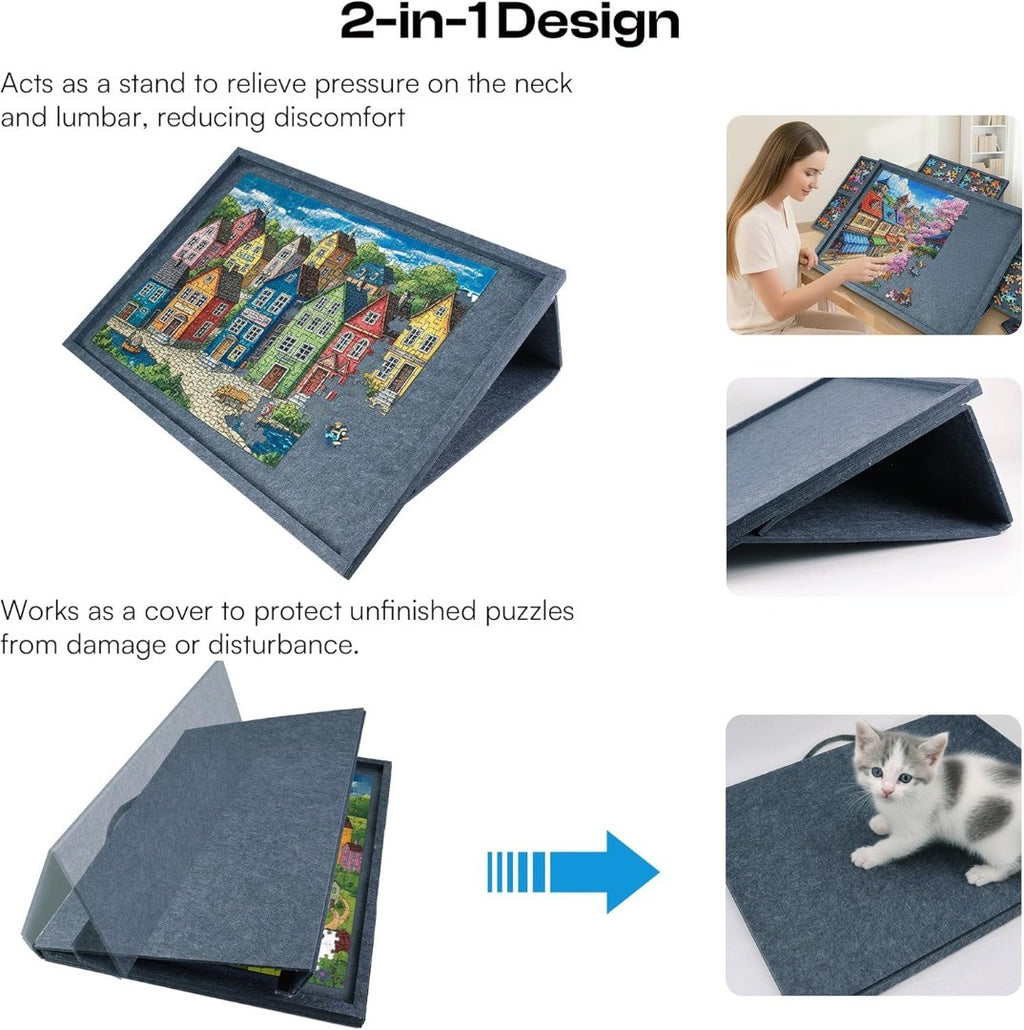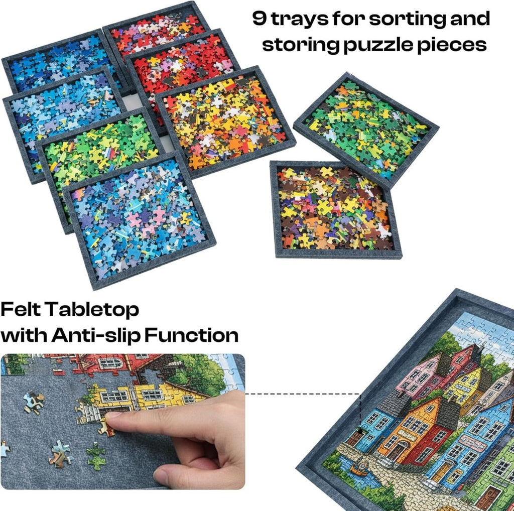 PP OPOUNT Tilting Jigsaw Puzzle Board 2-in-1 Designed Stand & Cover for Adults, Lightweight Felt Storage Case with 9 Removable Trays-Not Drawers, Portable Puzzle Table for Games Up to 1000 Pieces