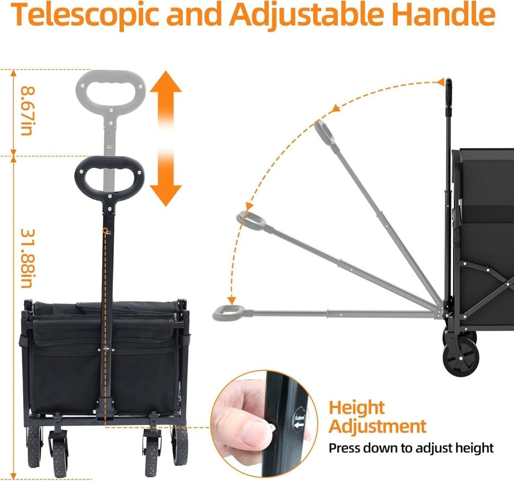 Adjustable Handle - This collapsible wagon equipped with an adjustable, telescoping handle for effortless transport.