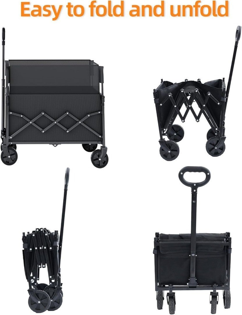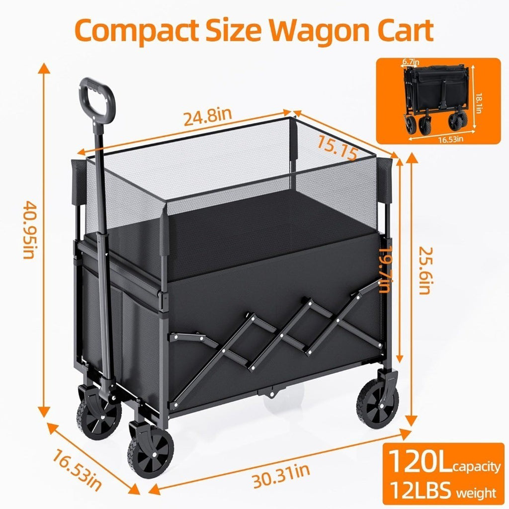 Smart Folding Wagon Cart - This collapsible wagon cart is designed for baggage handling , it has 120 L and upto 220 lbs load capacity, it can be used for outdoor sport, gardening works, shopping, camping and so on.
