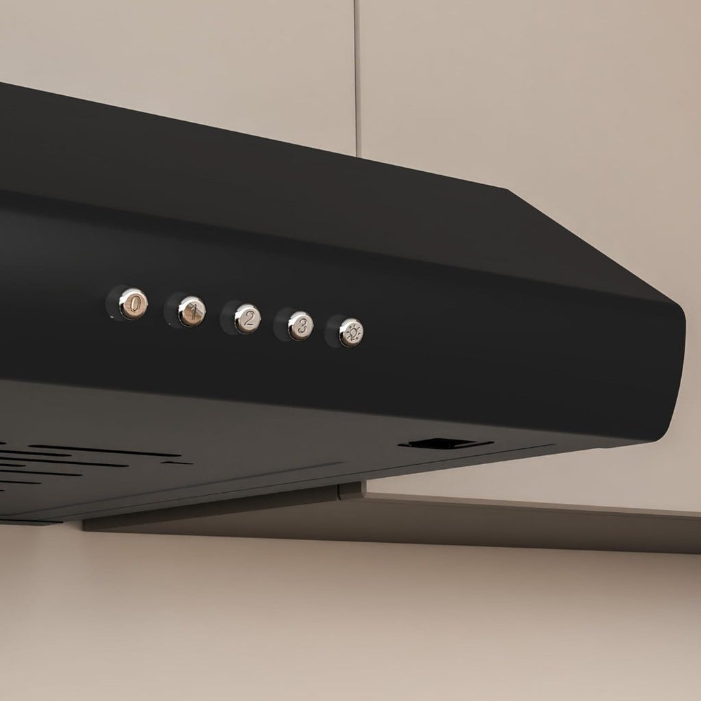 Enhance your kitchen ventilation with the FIREGAS 60cm Visor Cooker Hood, designed for efficient extraction and modern style. This undercabinet hood is wall-mounted and top vented, offering a sleek black finish that complements any kitchen decor.