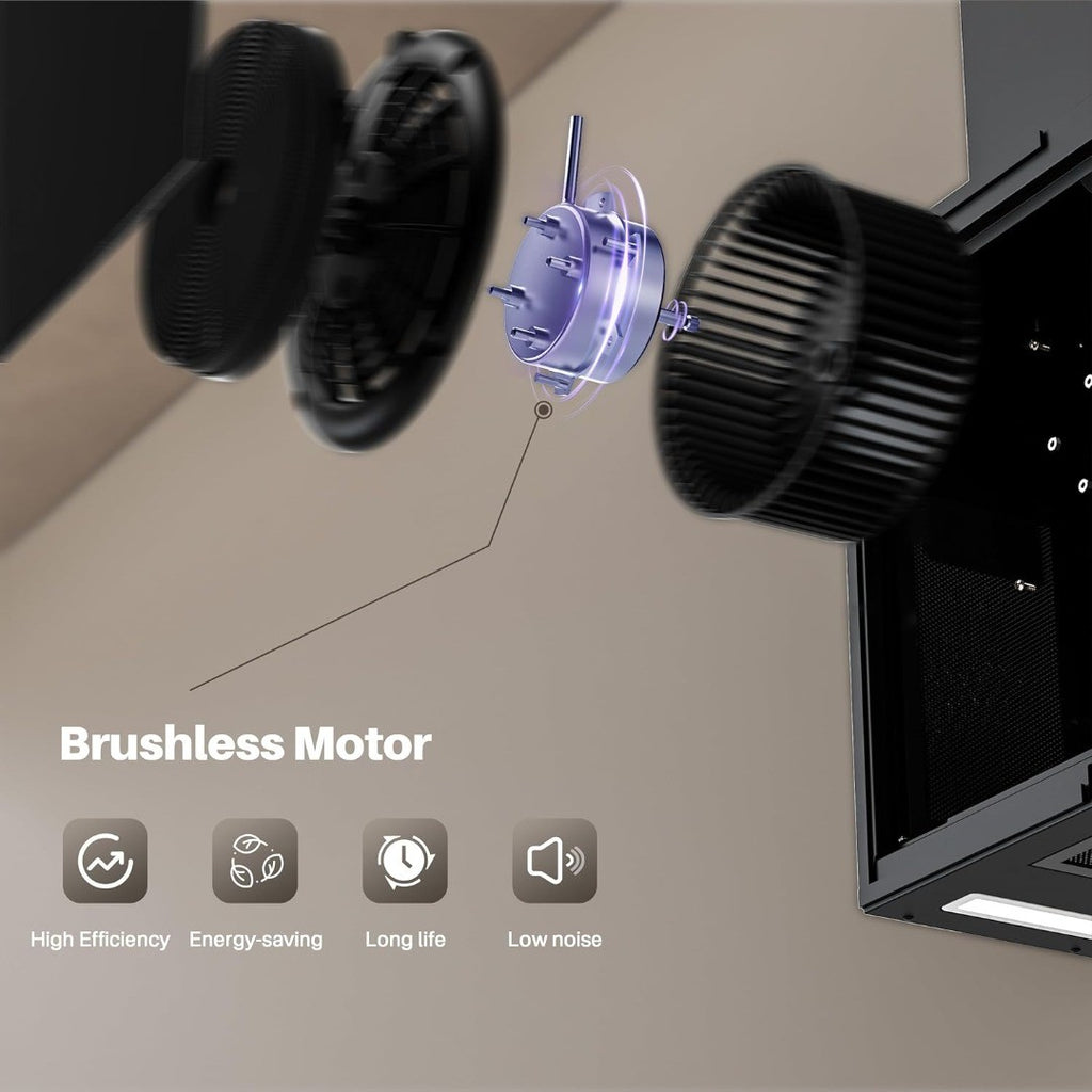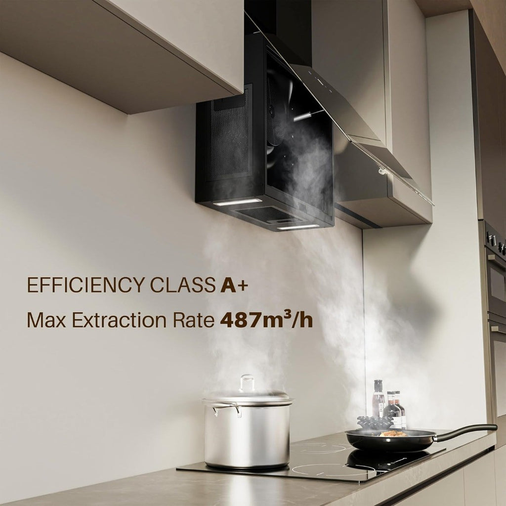 POWERFUL AND EFFICIENT PERFORMANCE: Equipped with a brushless motor, this kitchen extractor fan delivers powerful suction with an extraction rate of 487 m³/h. Capture fumes and unpleasant odours efficiently from both the bottom and sides, ensuring your kitchen remains fresh and clean.