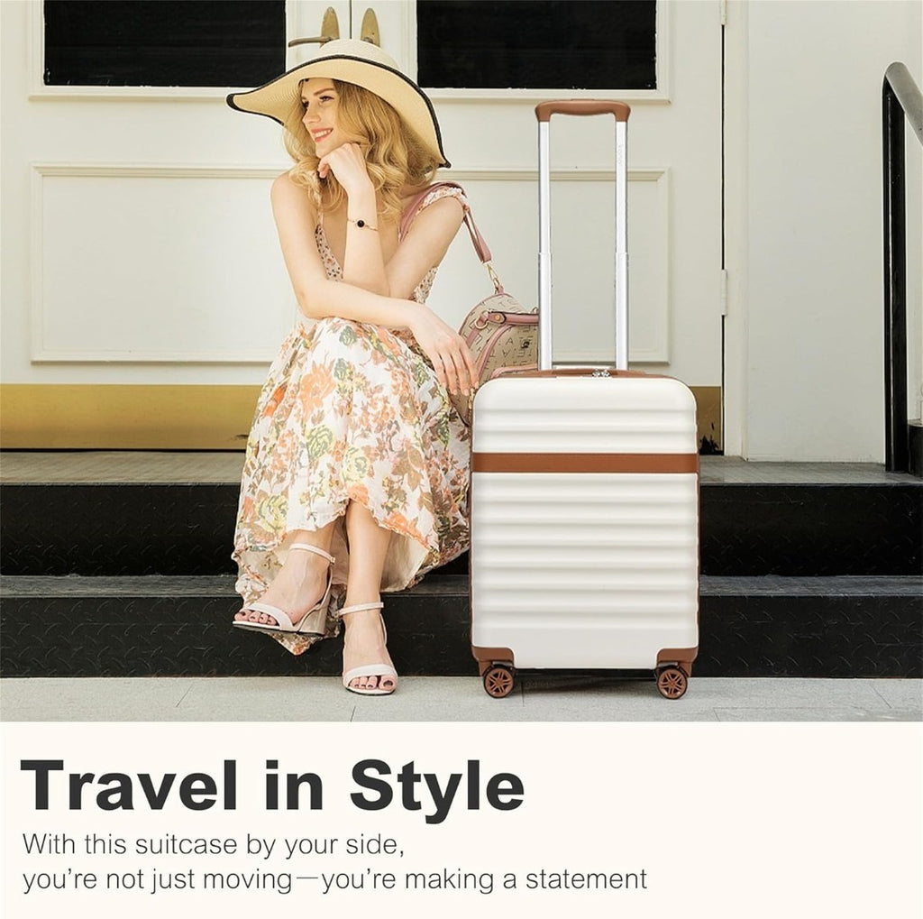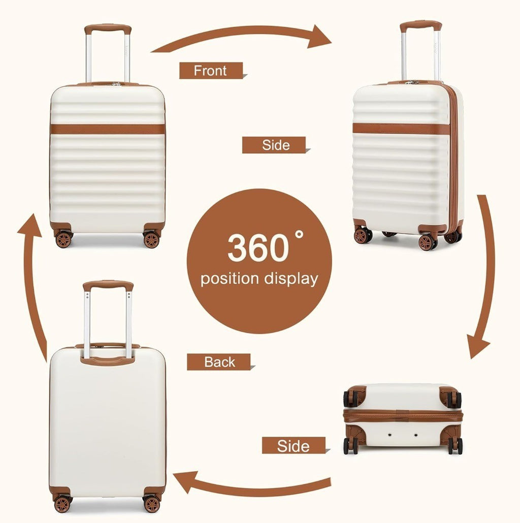 Kono Suitcase Check-in 24-Inch Expandable Luggage ABS+PC Hardshell Travel Trolley with TSA Lock Spinner Wheels (Cream/Brown)