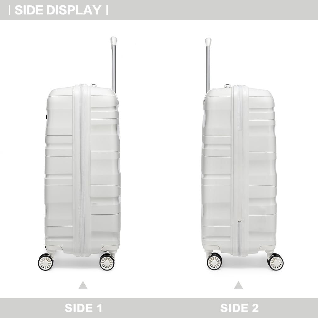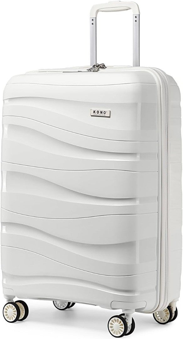 Kono Large Suitcase 4 Wheels Check in Luggage 28-inch Lightweight Polypropylene Hard Shell Suitcase with TSA Lock, 4 Spinner Wheels (White)