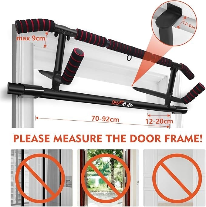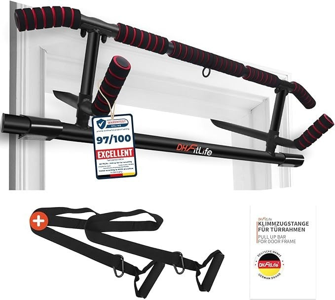 DH FitLife Pull Up Bar Doorway with Multiple Grip Positions, No-Screw Installation, Quick and Easy Set-Up, Foldable Chin-Up Bar with Sling Trainer, Fits Door Frames 70–92 cm.