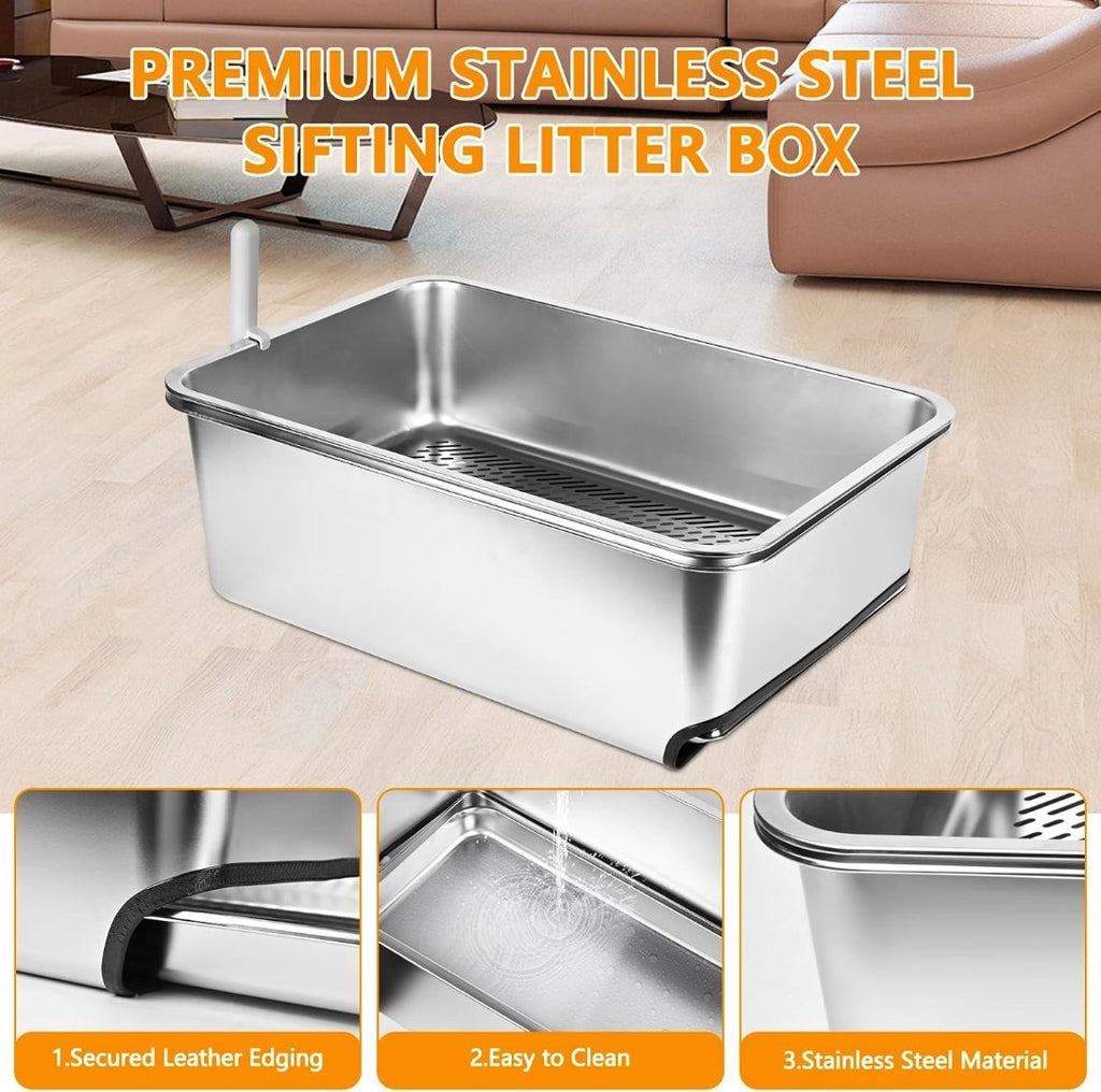 - Effortless Cleaning & Smooth Surface: Easy-to-clean design -Sifting litter boxes for pine pellets smooth stainless steel surface prevents waste from sticking.Simply rinse or wipe clean—no scrubbing needed