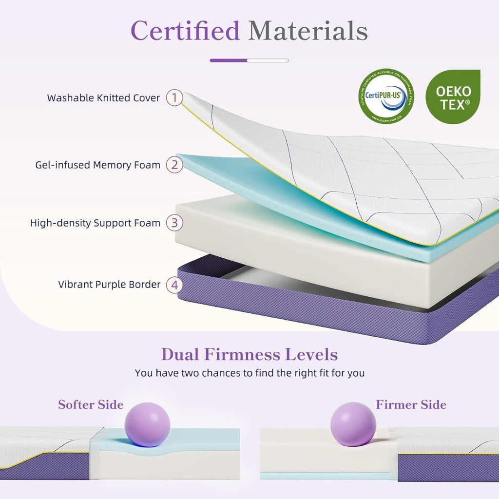 Vesgantti Small Double Bed Mattress, 16CM Gel Memory Foam Small Double Mattress with CertiPUR-US Certified Foam for Pressure Relief & Cooling Comfort - Medium, 120x190x16cm, Lavender Purple