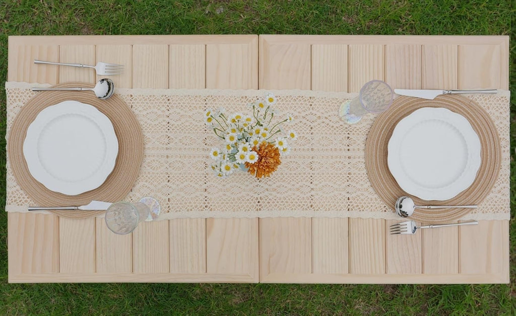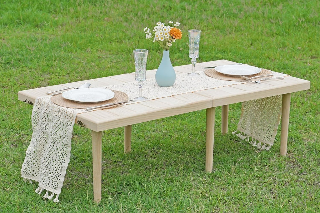 Premium Solid Wood – Built to Last: Crafted from solid pine wood, the tabletop retains its natural grain, adding a touch of bohemian charm to your outdoor setting. The beach table legs are made from durable solid rubber wood, ensuring long-term stability and reliable support.