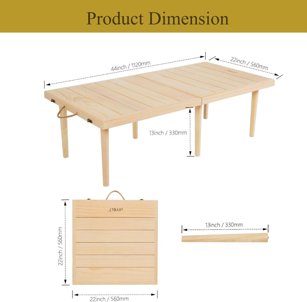 Removable Wooden Legs – Natural and Stable: Featuring detachable legs with a height of 33cm, this camping side table pairs beautifully with floor cushions and brings you closer to nature. Unlike metal legs, solid wood legs provide both superior stability and a naturally warm aesthetic.