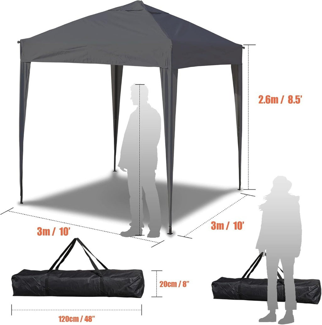 SANHENG Pop Up Gazebo Tent Heavy Duty Fully Waterproof All Weather Shelter Ideal for Outdoor Party Camping 3x3m Open Sided Grey