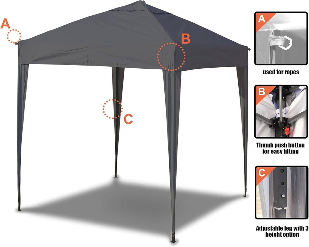 FAST AND EASY SET-UP: Push-up technology makes it easy to set up the gazebo in seconds, 3-step height-adjustable system. Strong poles and structure keep the tents stable outdoors.