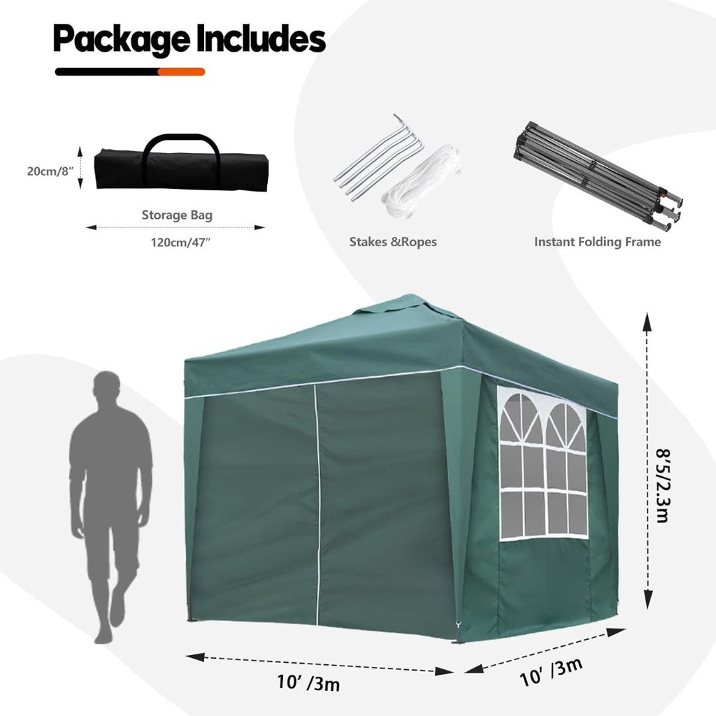 SANHENG Pop Up Gazebo Tent with Weights, Fully Waterproof, All-Weather Gazebo for Outdoor Party, Event, Camping (3x3m, Green)
