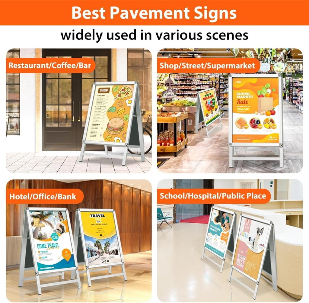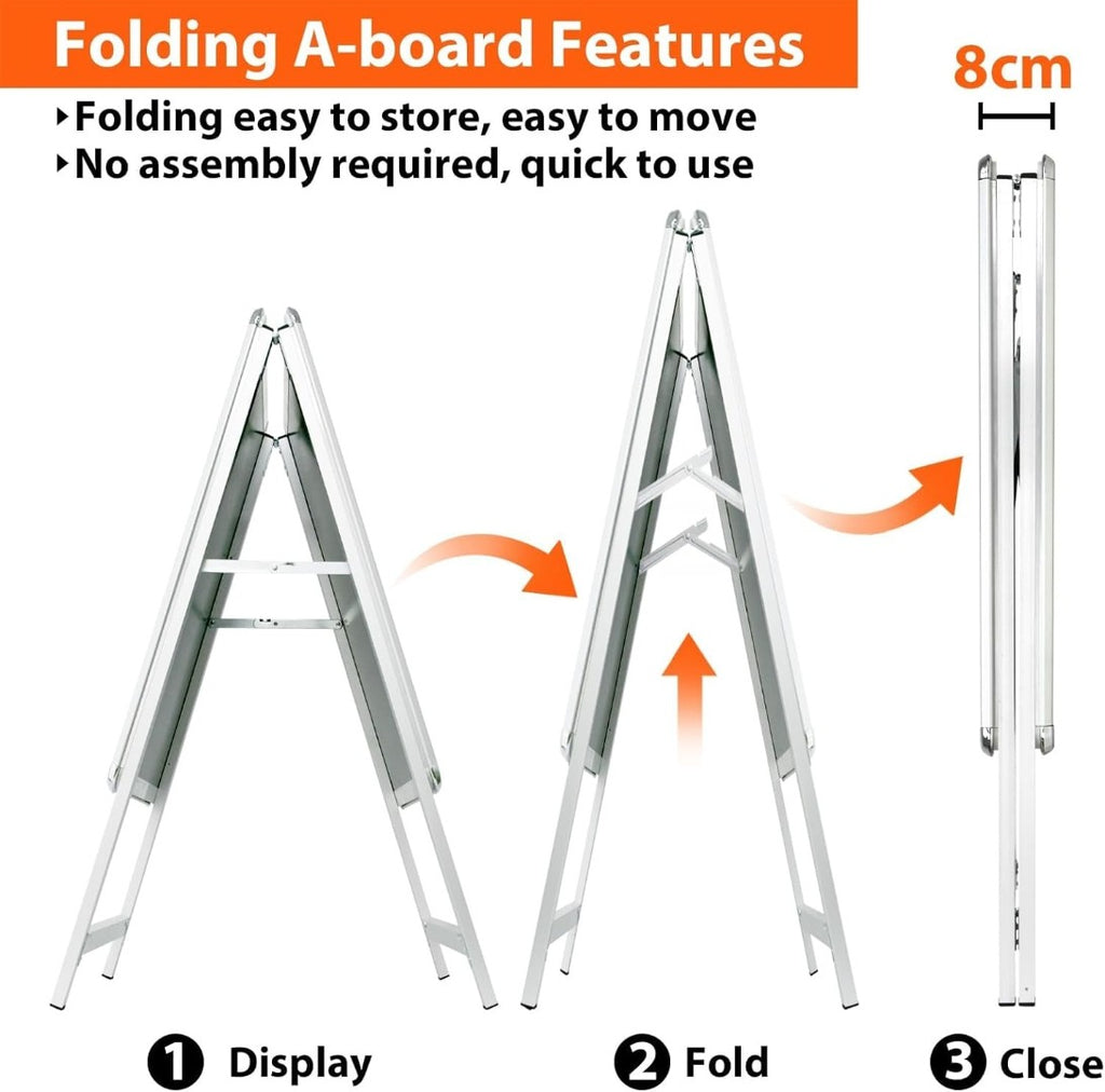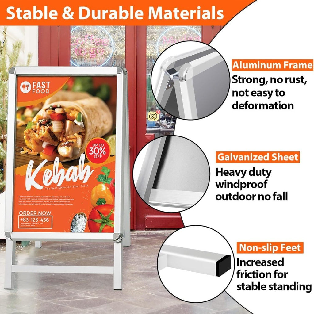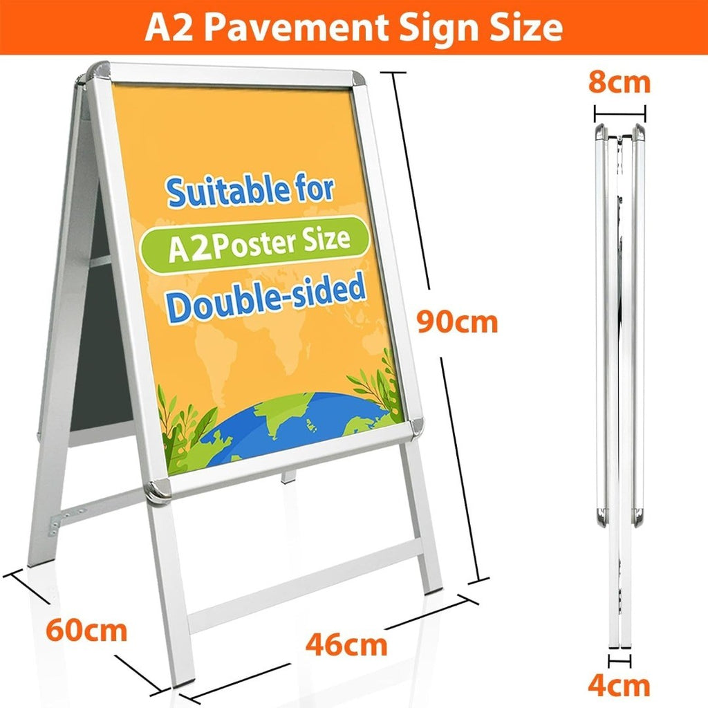 A-Board Pavement Sign Double-Sided Display Frame Silver A2