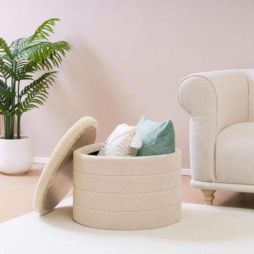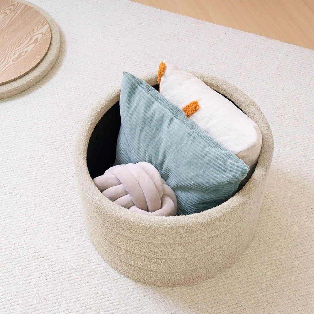 Decorative Design - A dreamy design with round shaped ottoman storage with lid, elegant and eye-catching, Foldable structure design, assembled in seconds, no tool needed, easy to carry or store when not in use.