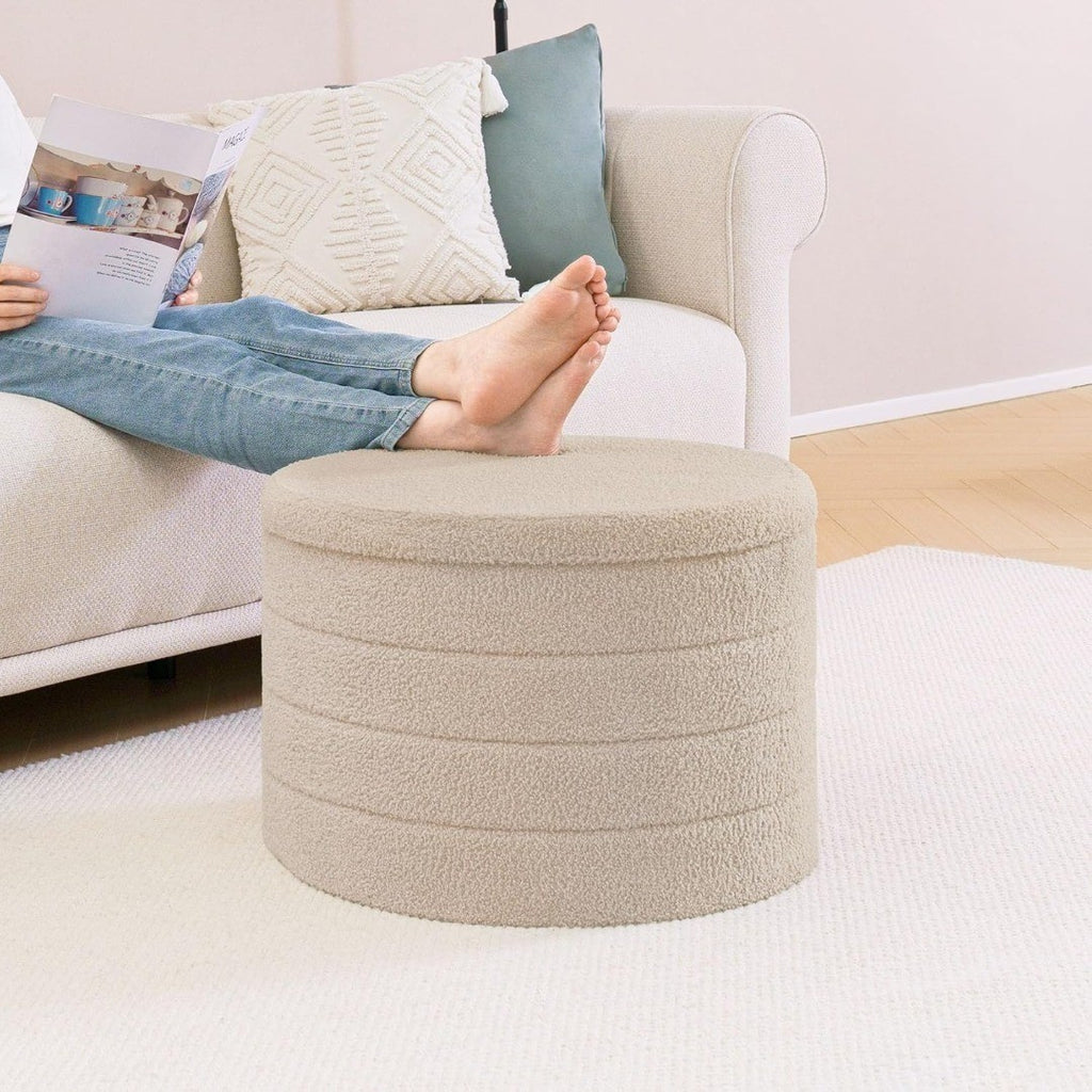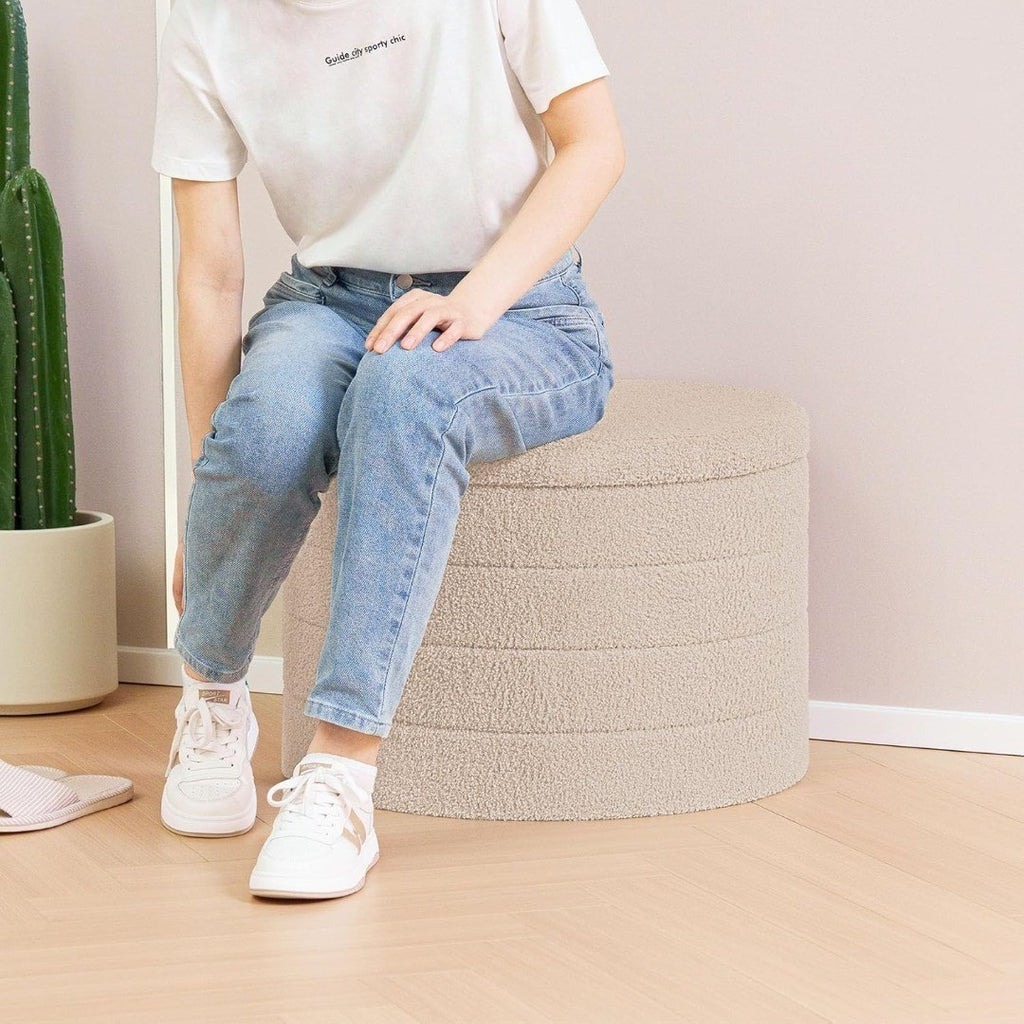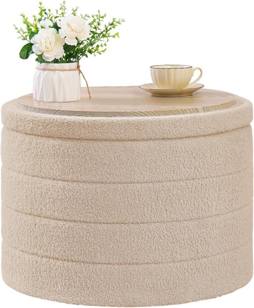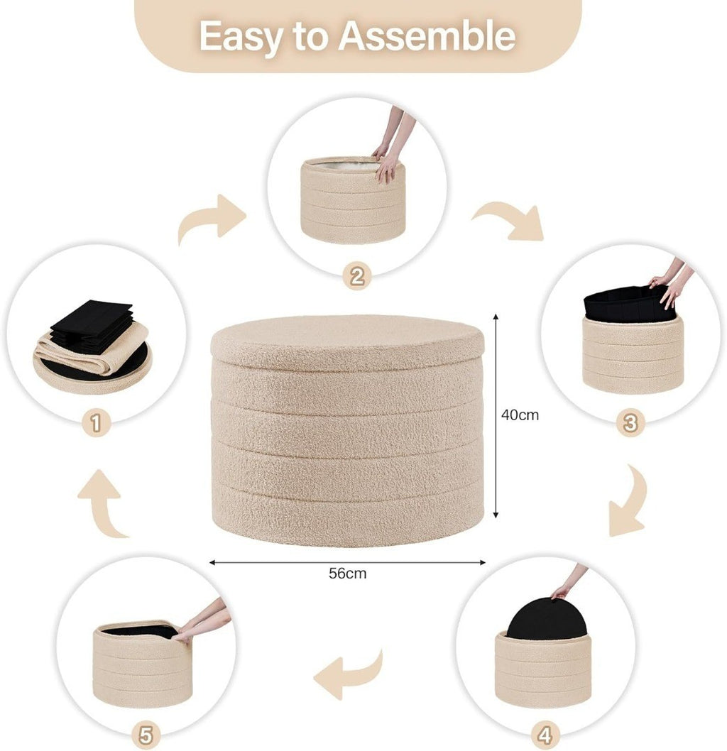 Extra Large Folding Round Ottoman with Storage, Boucle Ottoman Storage Stool, Footstool Seat Coffee Table, Toy Box Storage, Footrest Stool for Living Room, Bedroom, Beige, 56x56x40cm