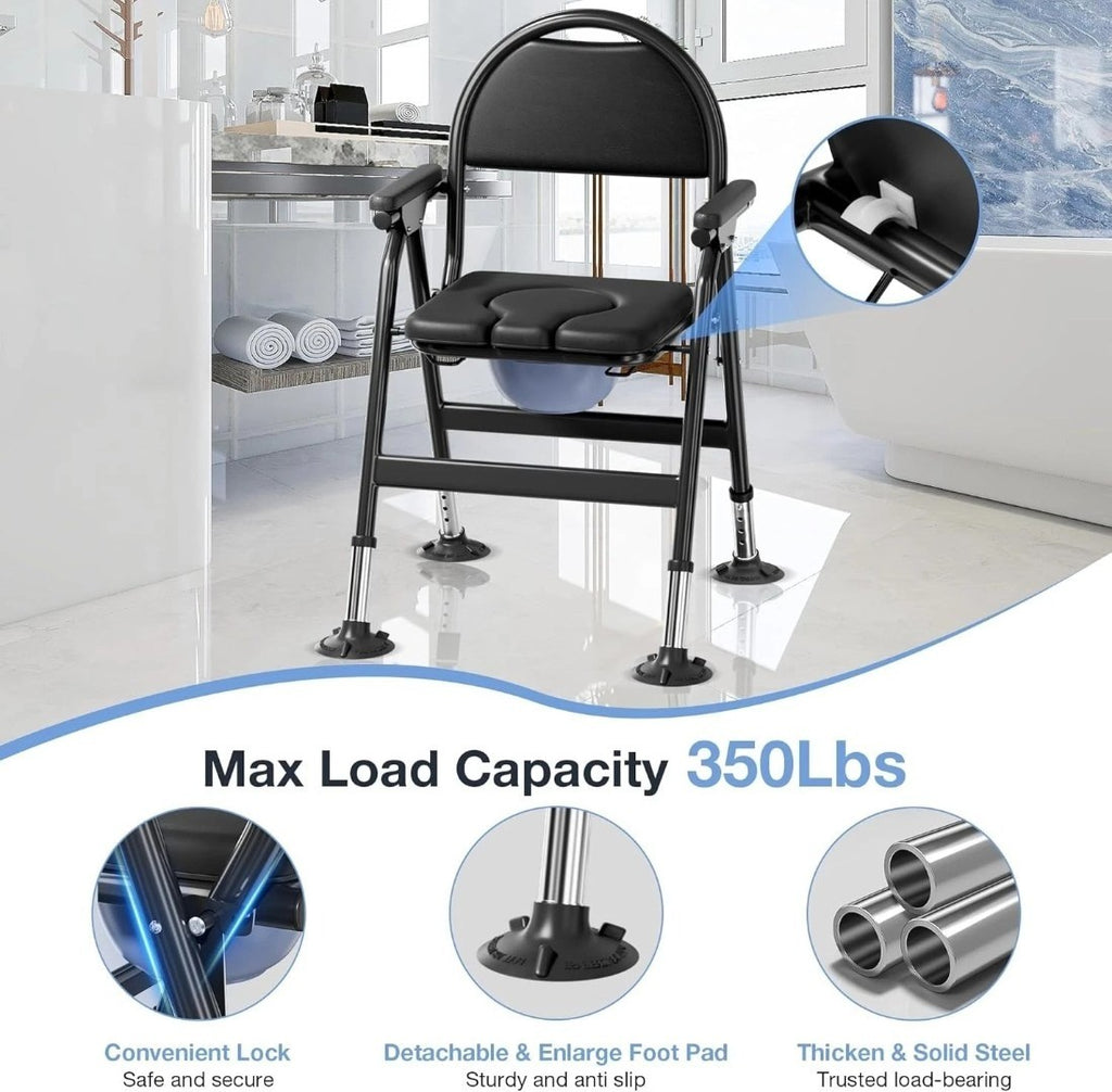 - Freely Adjustable Height-Customize comfort effortlessly! This commode chair features 5-position height adjustment (33"-37" total height | 16.1"-20.1" seat height), ensuring ergonomic support for users of all sizes. Perfect for bedside, bathroom, or shower use.