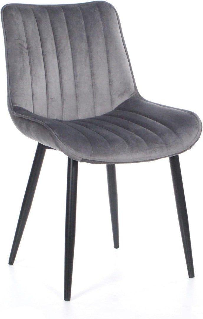 Haiko Velvet Upholstered Grey Dining Chair Padded Black Legs Kitchen Accent