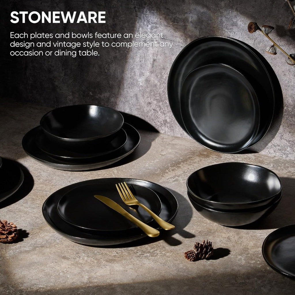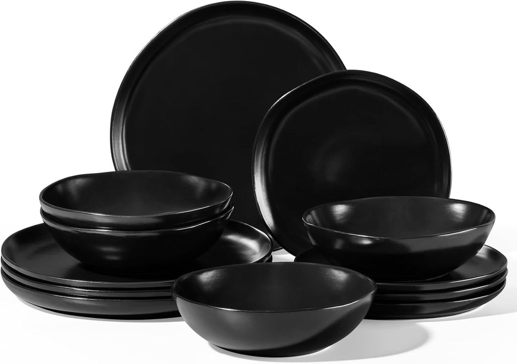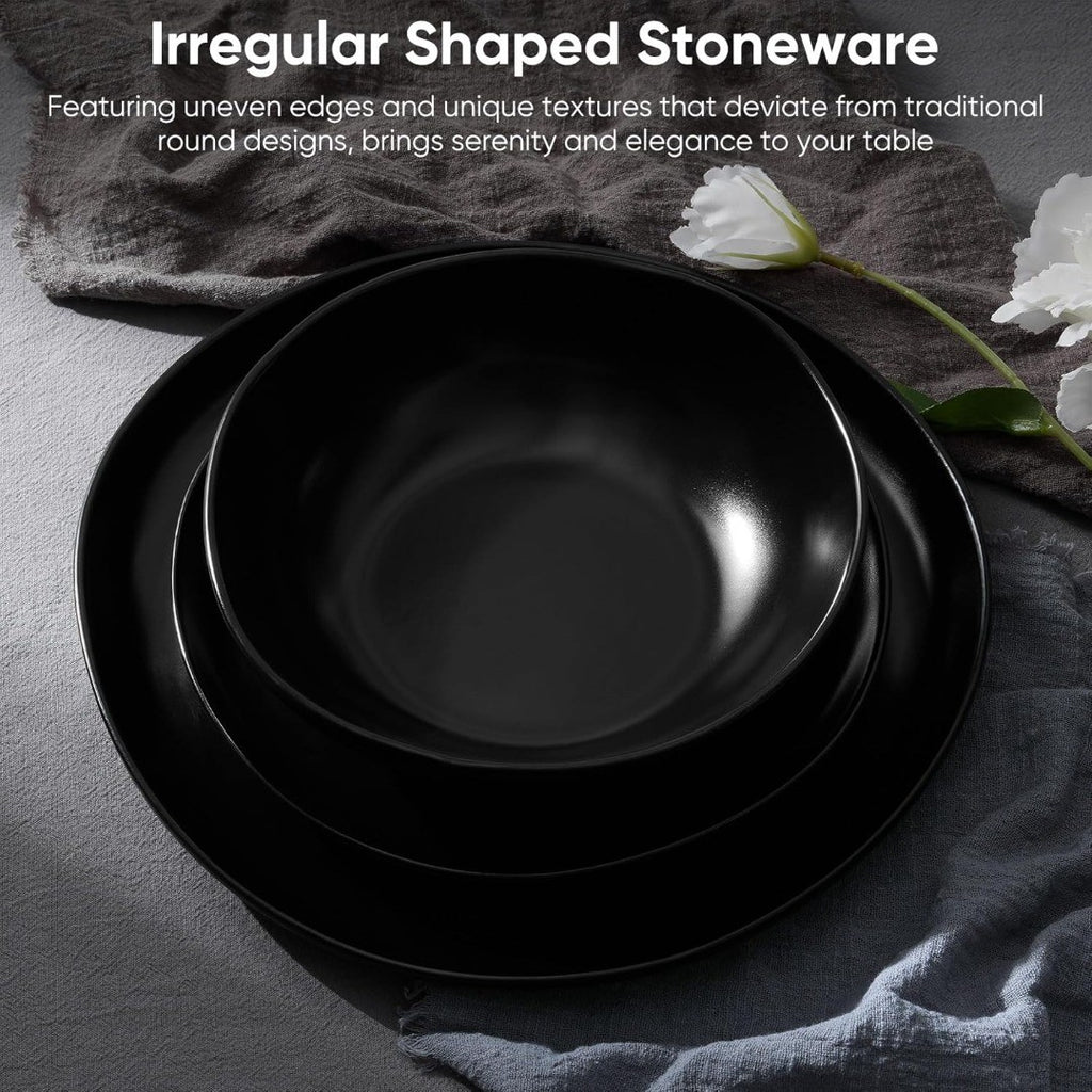 Homikit 12-Piece Dinner Set, Reactive Glaze Stoneware Dinnerware for 4 People, Irregular Shape Plates and Bowls, Non-Toxic & Scratch Resistant, Microwave and Dishwasher Safe - Obsidian Night
