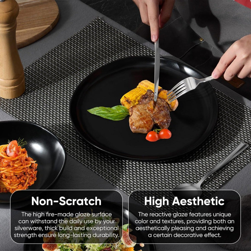Reactive Glaze Finish: Each piece are handcrafted and firing at high temperature to form a thick and scratch-proof surface, Well-made and substantial weight in your hand, Beautiful reactive glaze gives this dining set its own character, adding elegance and sophistication to your table setting, Your meals will look even more appetizing with this stylish touch.