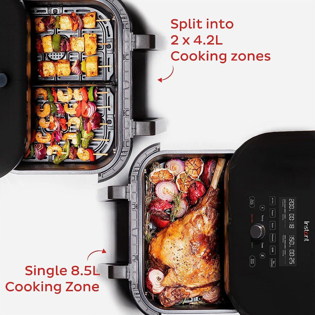 Instant Vortex Plus Versa Zone - Dual Air Fryer, 8-in-1 Smart Programmes - Fry, Bake, Roast, Grill, Dehydrate, Reheat - 80% energy saving, Black, 8.5L XL