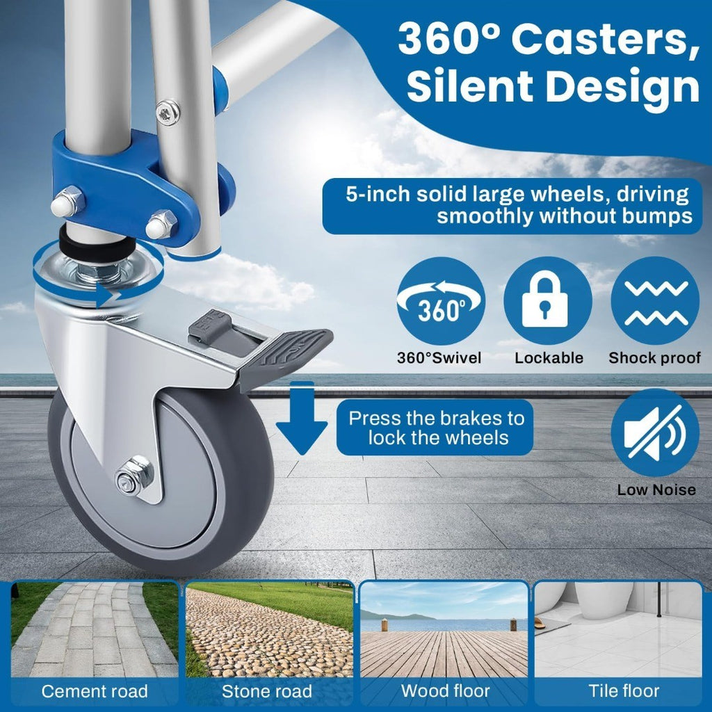 【Enhanced Mobility & Safety】Equipped with four 360° smooth-rolling swivel casters each featuring a reliable locking brake for secure stability during use The added anti-tip folding footrest provides an extra layer of safety preventing accidents