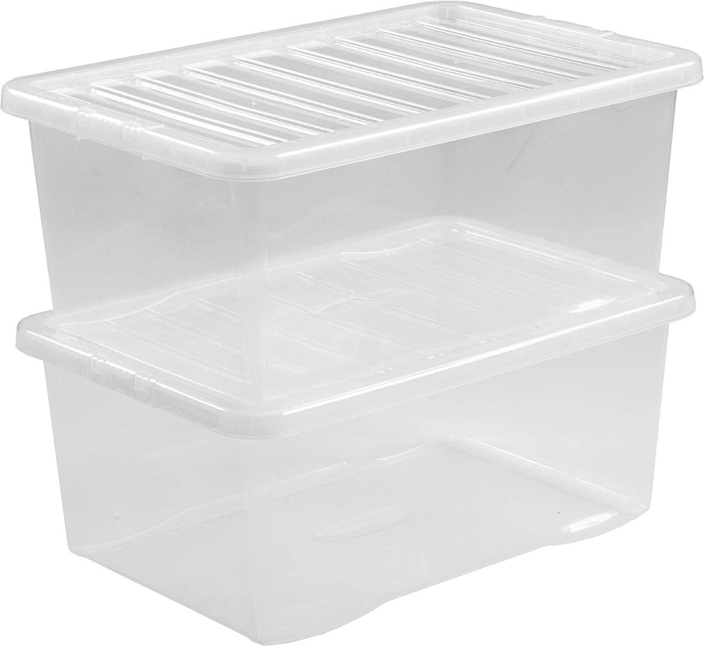 Get organised in style with this set of 5 Wham 45-Litre Clear Heavy Duty Plastic Storage Boxes – the perfect solution for decluttering your home, garage, or office. With a generous 45L capacity and strong snap-on lids, these boxes are built to last and stack, helping you maximise space while keeping your items dust-free and easy to find.