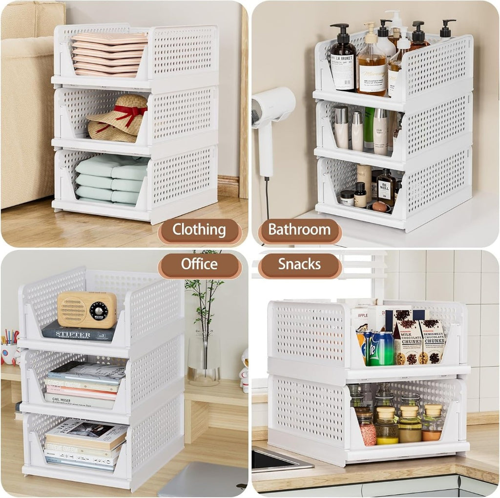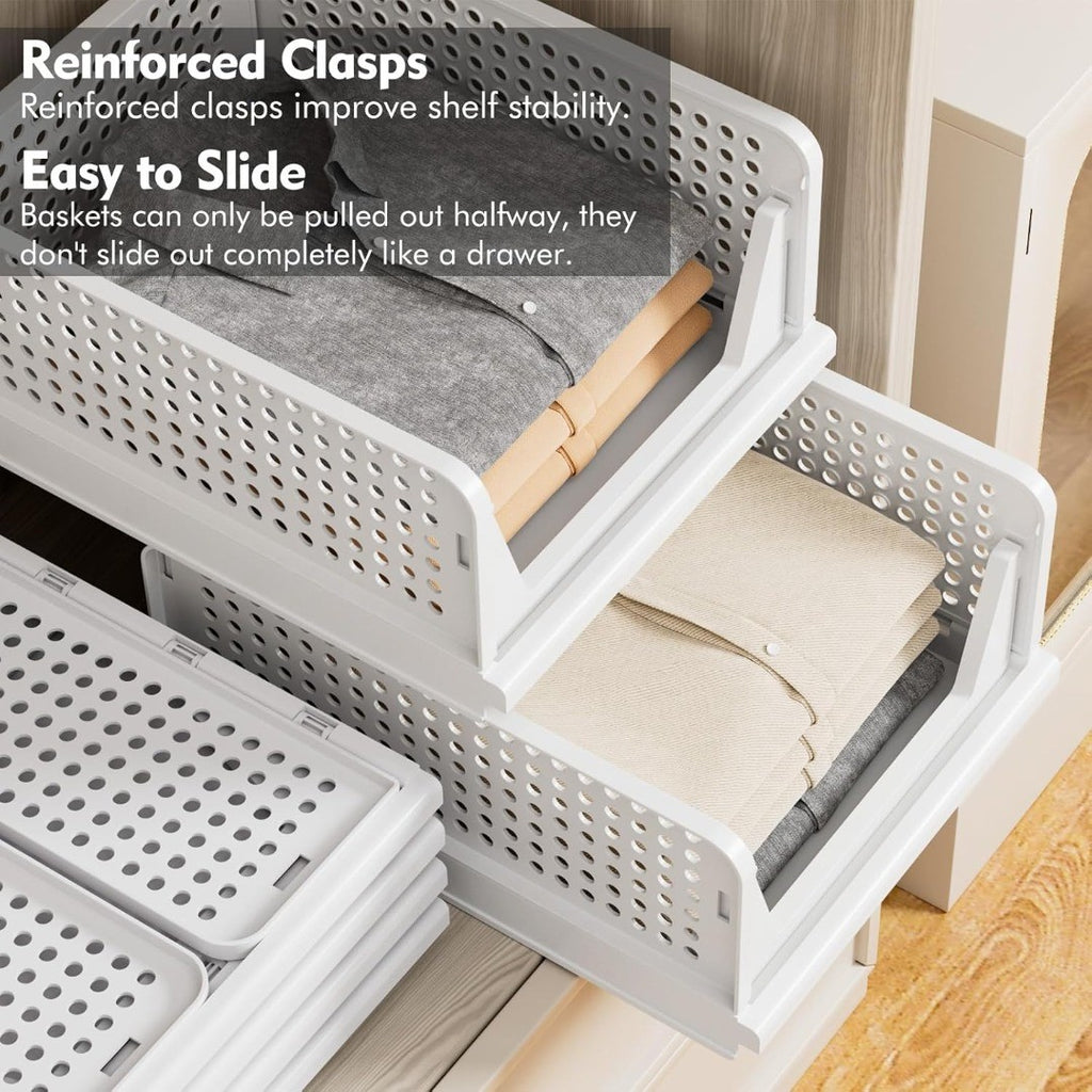 Pack of 8 Stackable Slide-Out Storage Baskets Folding White