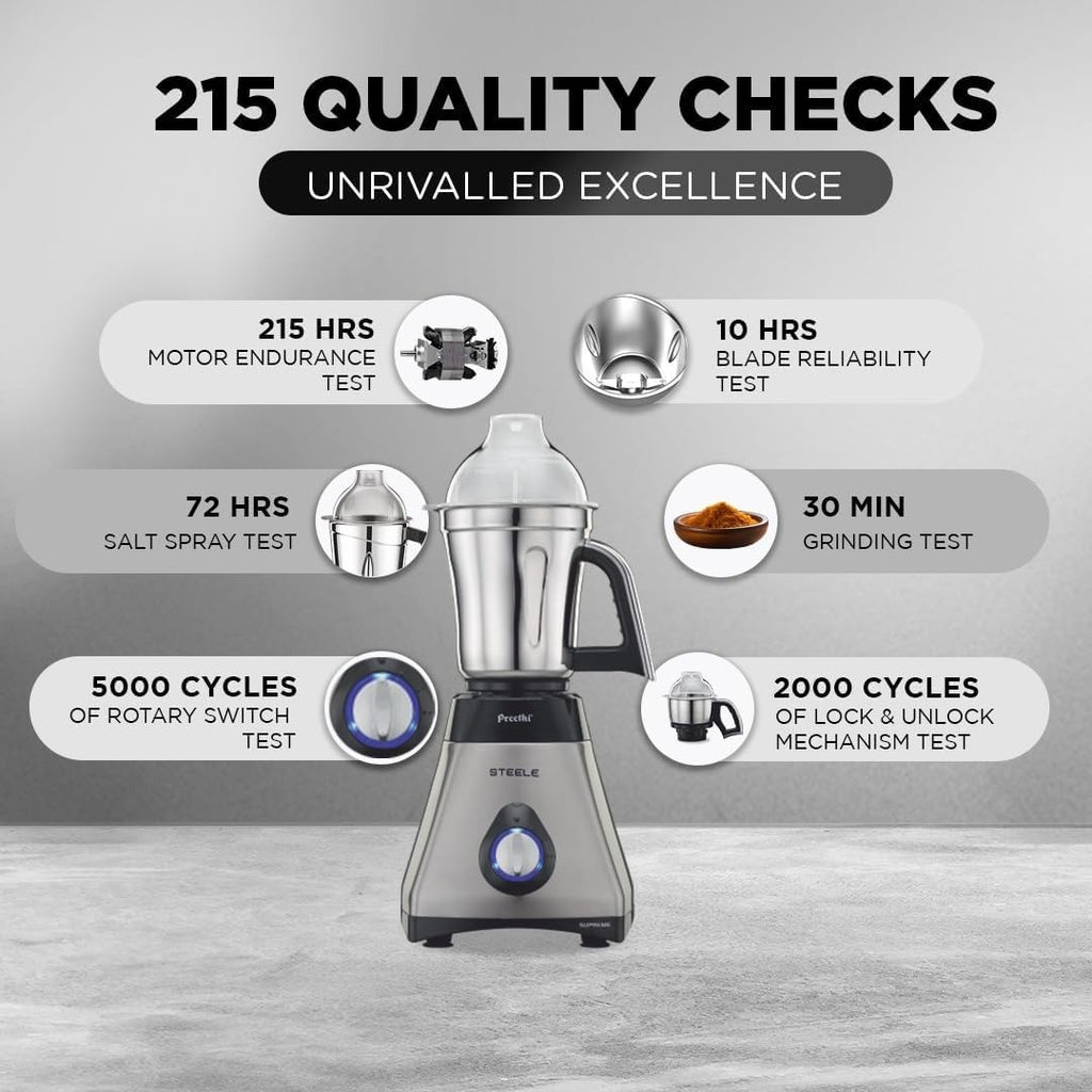 Preethi Steele Supreme MG-208-750 Watt Mixer Grinder with 4 Jars & Vega W5 Motor
