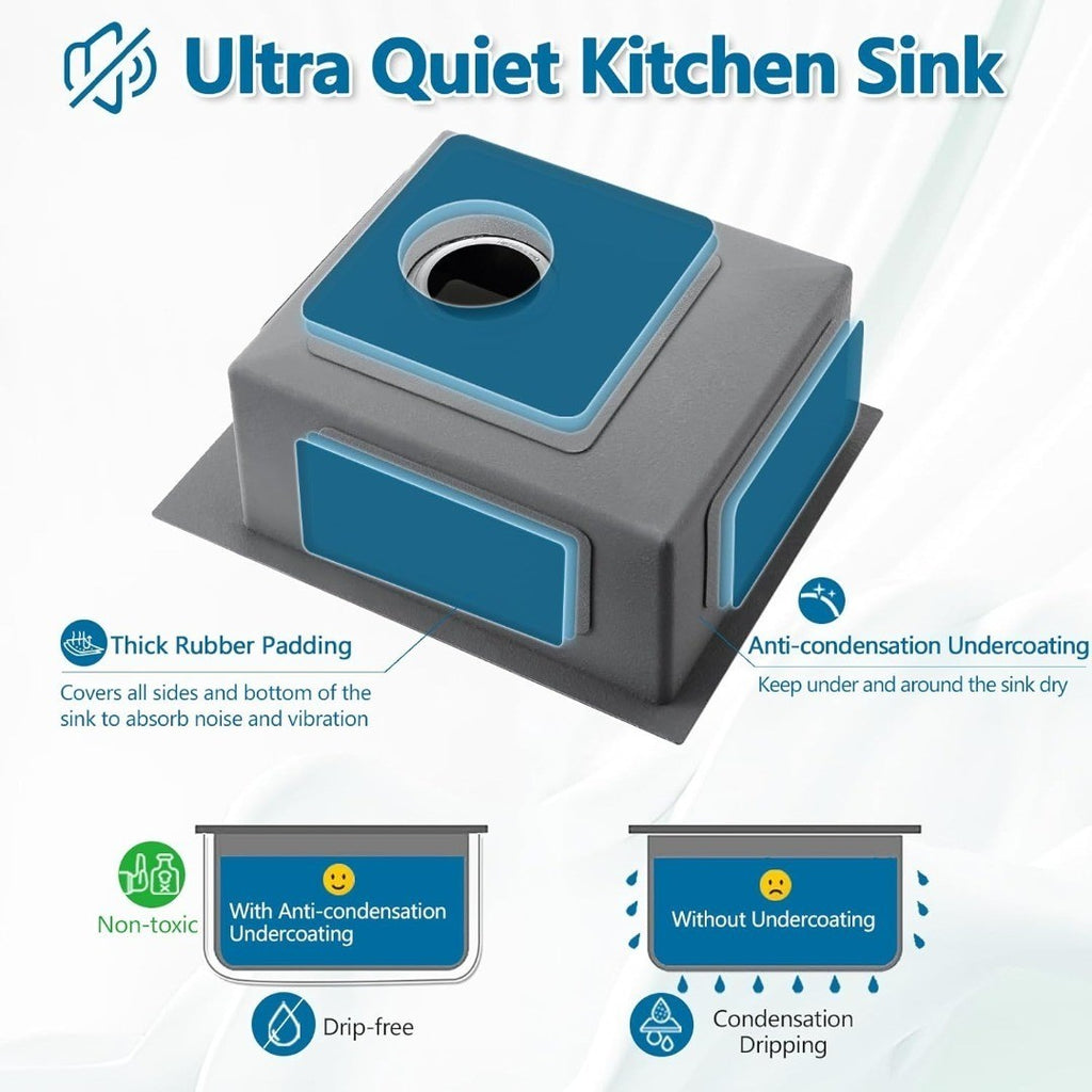 Noise: Equipped with premium thickened sound-dampening pads to significantly reduce water flow noise for a peaceful kitchen environment.