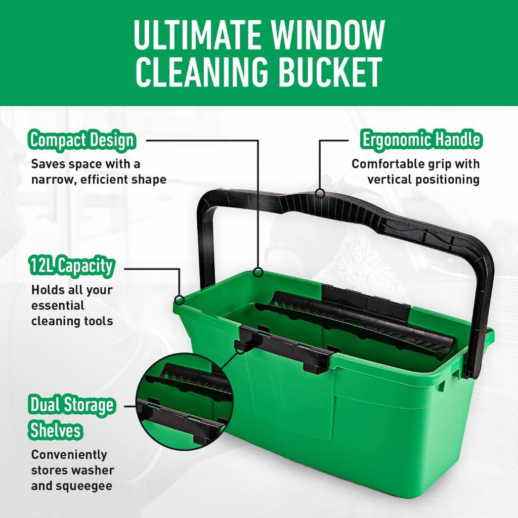 Item Description: Professional‑grade window cleaning kit designed for both home users and commercial cleaners. Includes a high‑quality squeegee, microfibre washer with T‑bar handle, and a 12L bucket for efficient, streak‑free results. Compact and easy to use, this starter set is ideal for achieving sparkling clean windows with minimal effort.