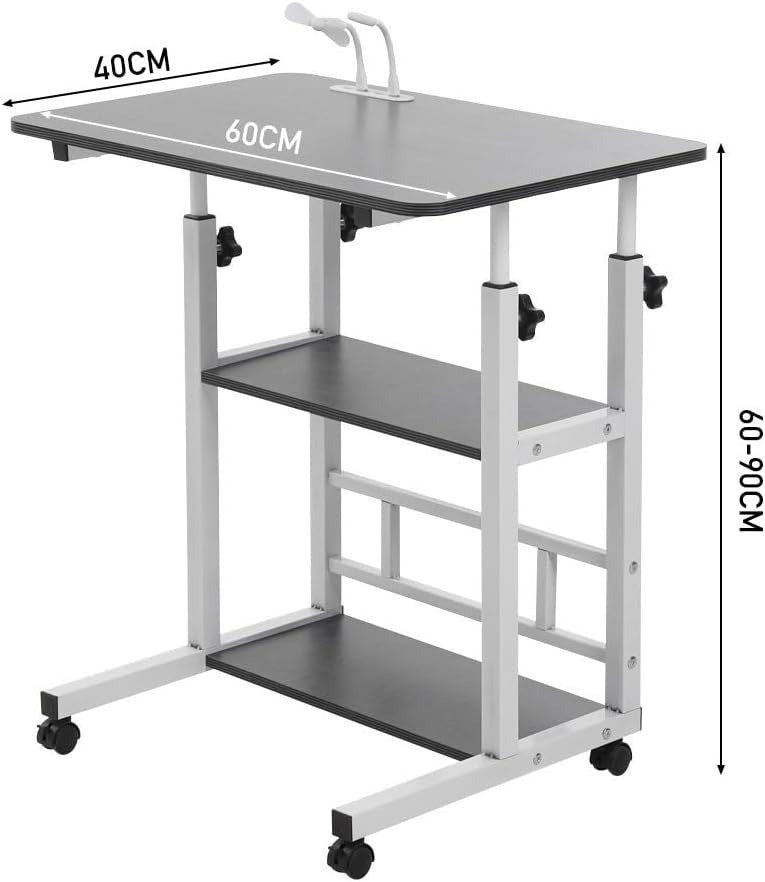 - HEIGHT ADJUSTABLE:The mobile height adjustable study desk height can be adjusted between 60-90cm. The dimensions are 60 × 40 × 60-90 cm. This ensures that the end table can be adjusted to the perfect height. with 4 locking buttons to adjust the sit-stand table to the most ergonomic height.