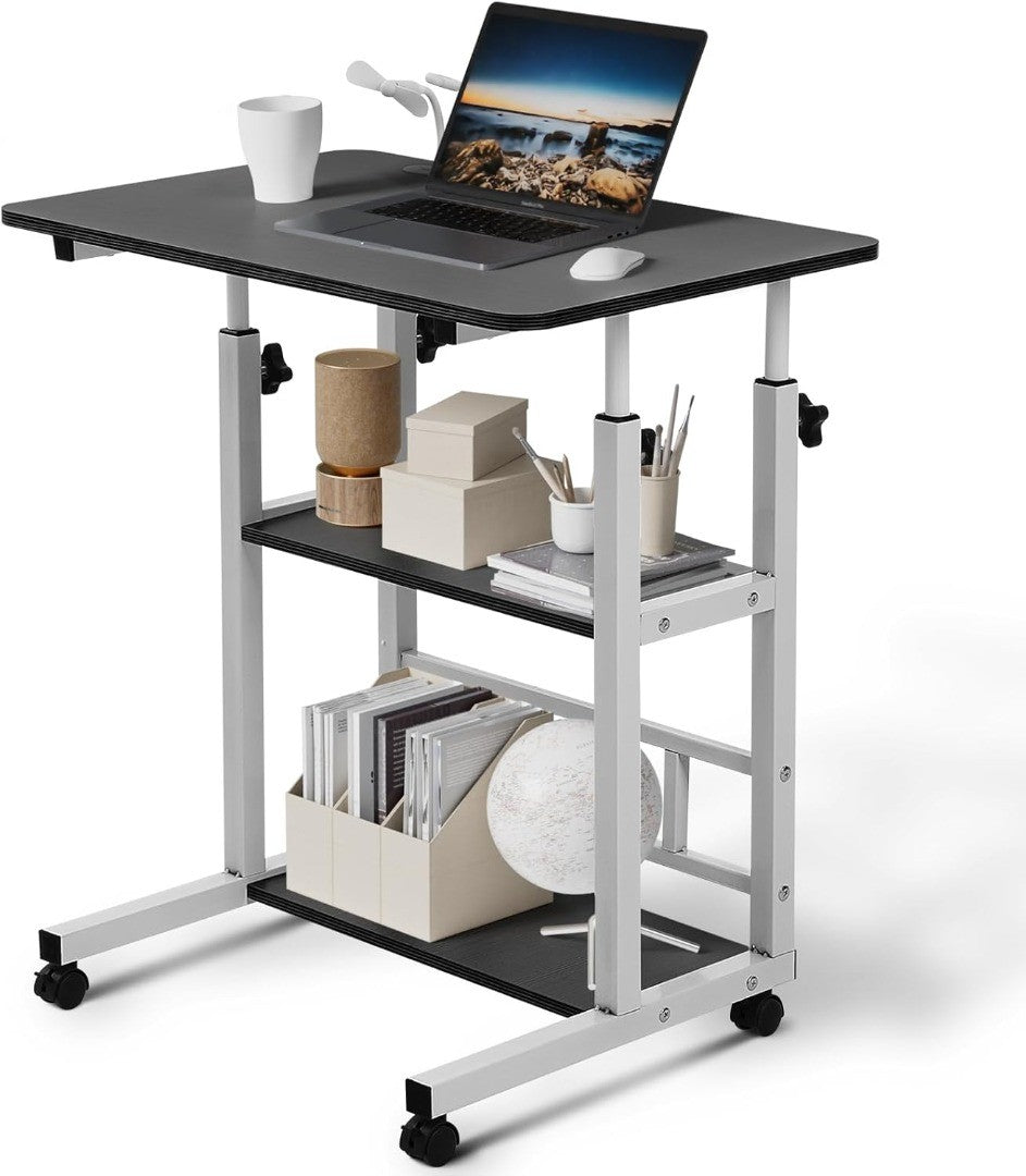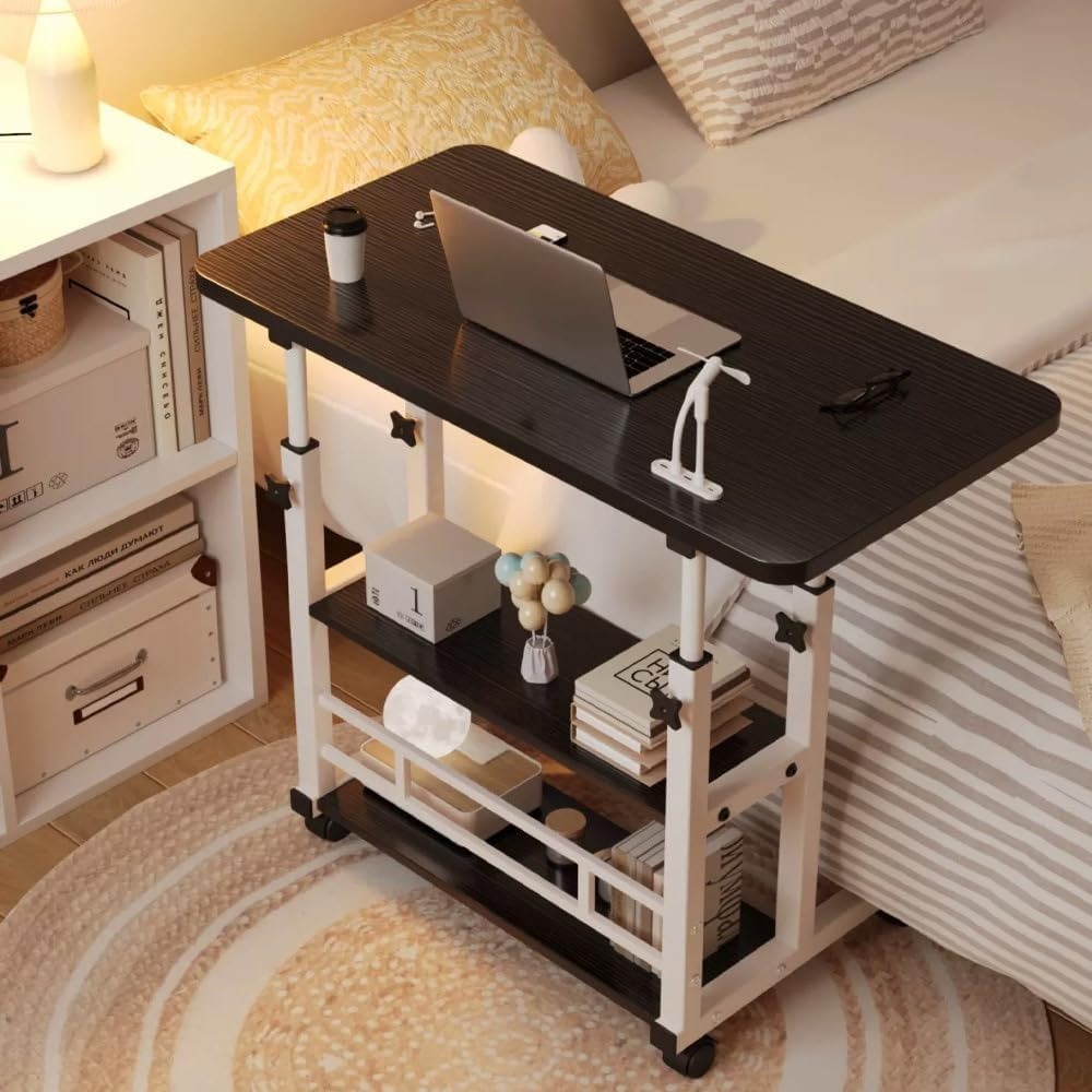 - EASY TO MANEUVER:Portable computer desk that is perfect for putting things wherever you sit. This large standing desk on wheels can be placed next to a sofa, on a balcony, next to a bed, in a tight corner or on a rocking chair. No need to worry about assembly. Our overbed table comes with simple construction, easy to operate, hardware package and can be ready in 15 minutes.