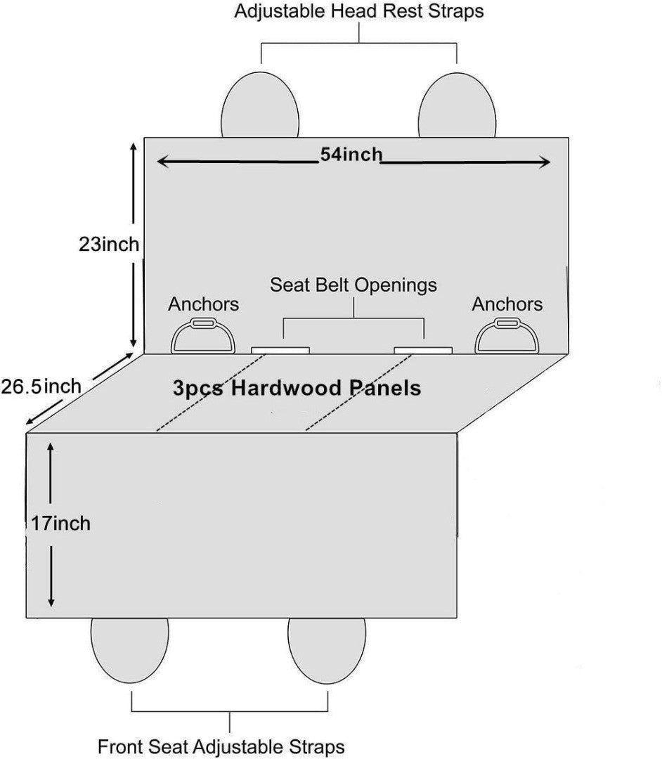 Recommended backseat area: 54" width × 26.5" depth or larger