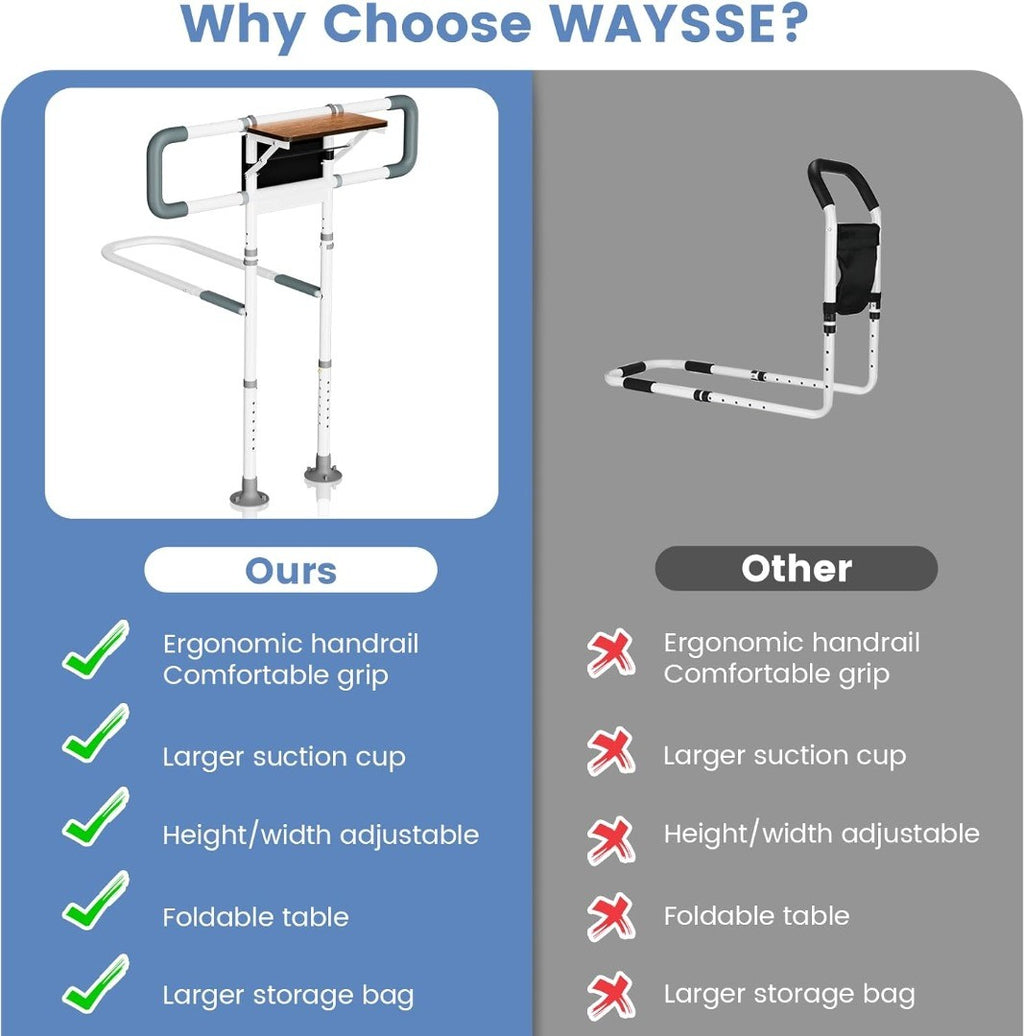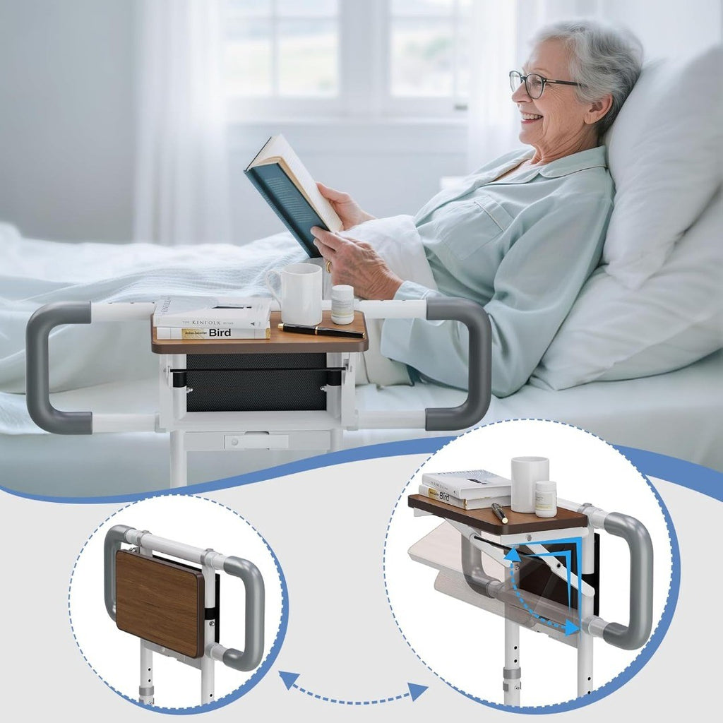 Bed Rail Safety Assist Grab Bar with Tray Table