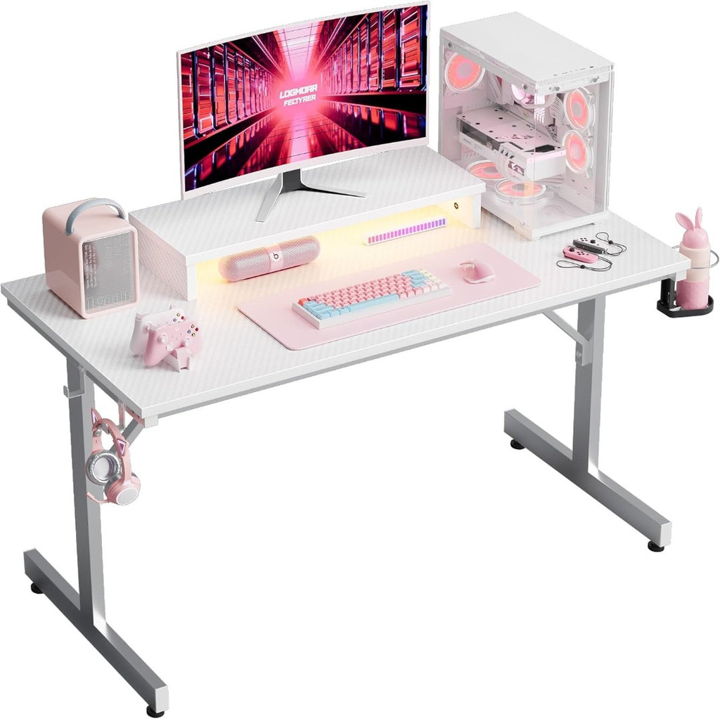 BESTIER Small Gaming Desk with LEDs & Monitor Stand White