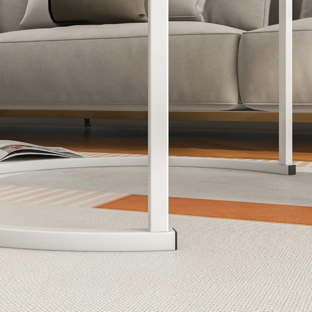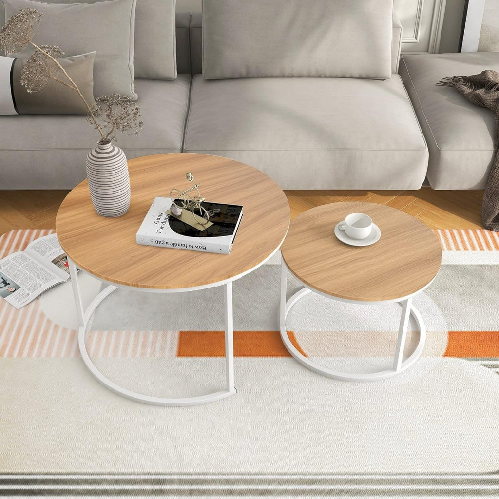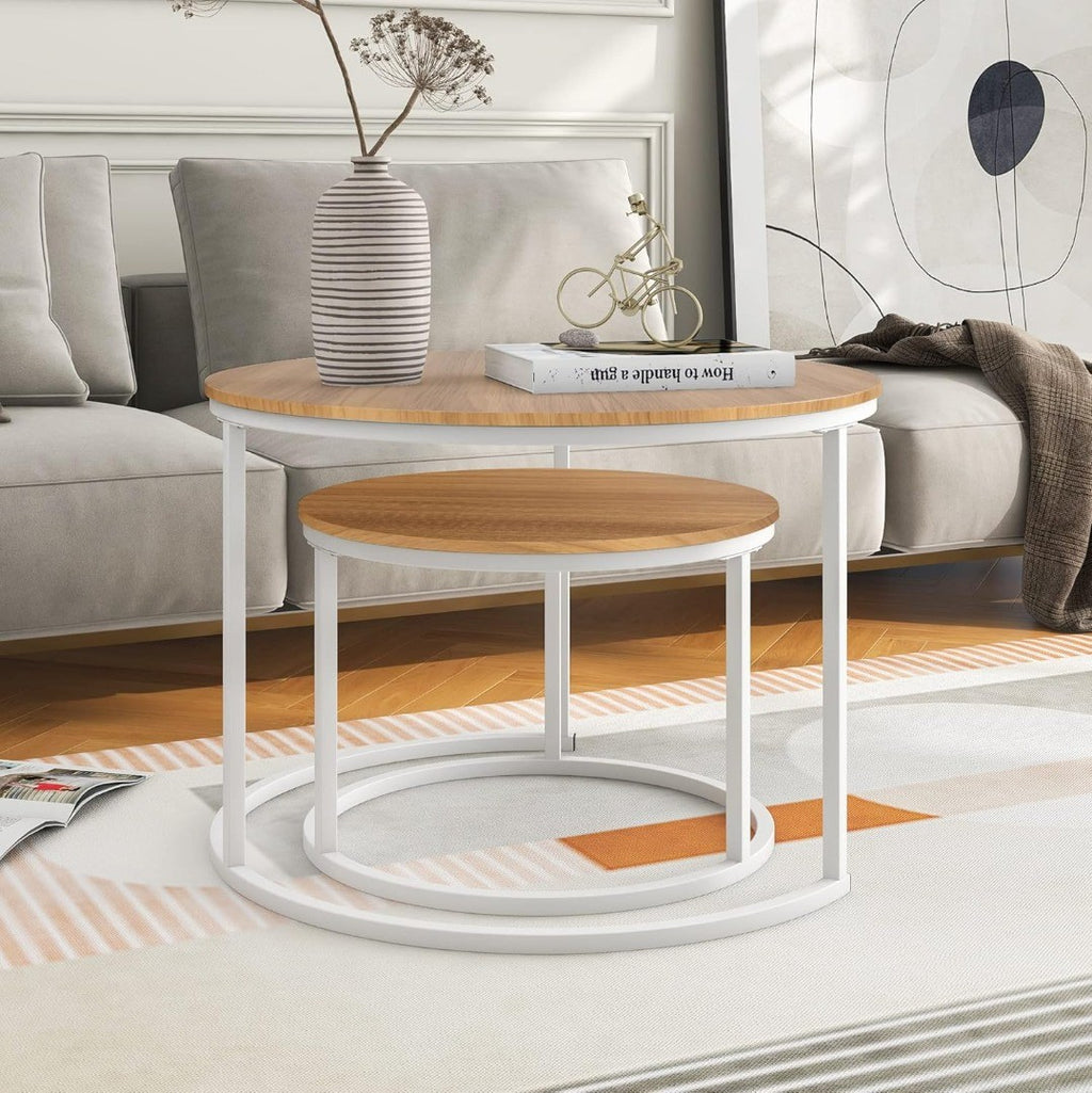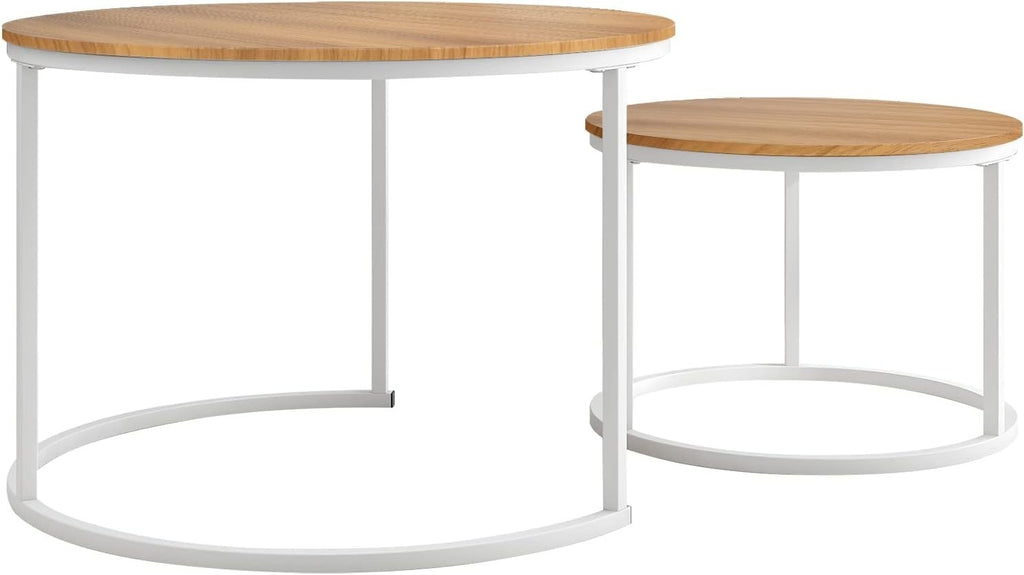 BOFENG Set of 2 Round Nesting Tables White/Oak