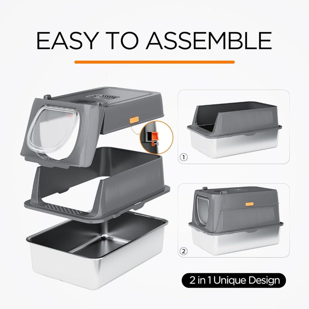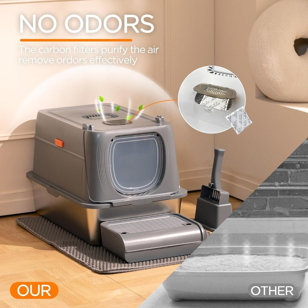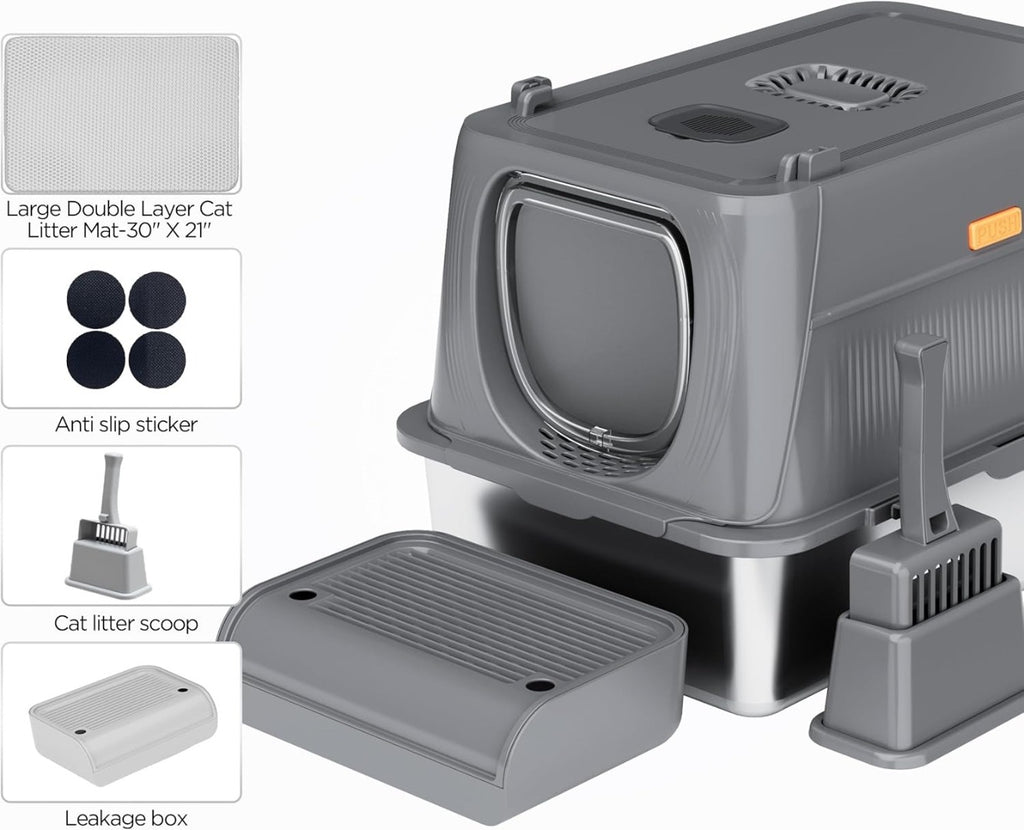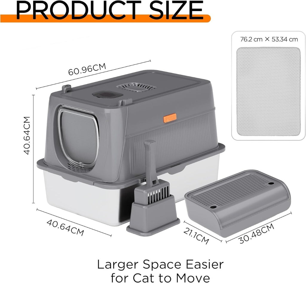 with Lid, Extra Large Enclosed Metal Litter Box with Litter Scoop&Double