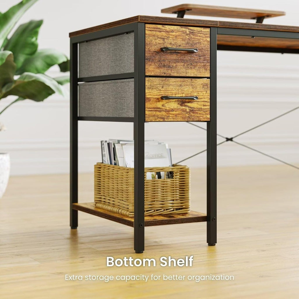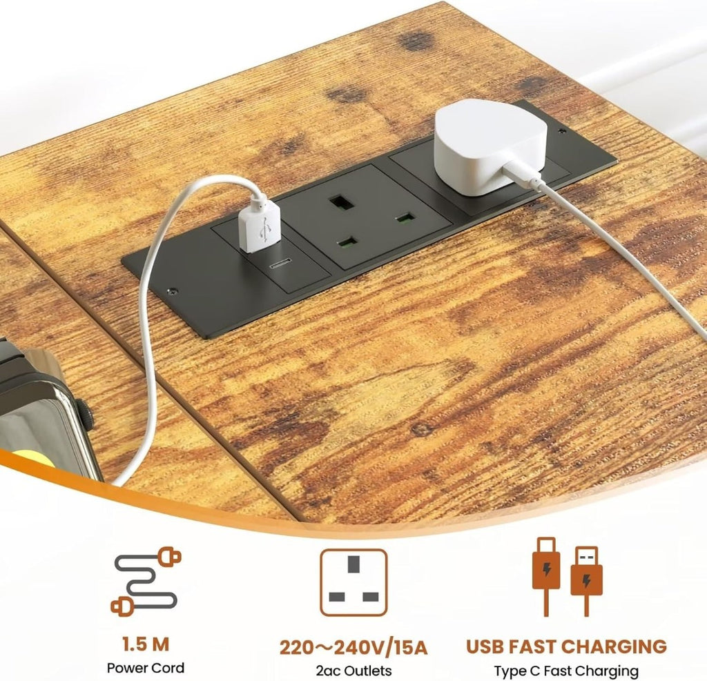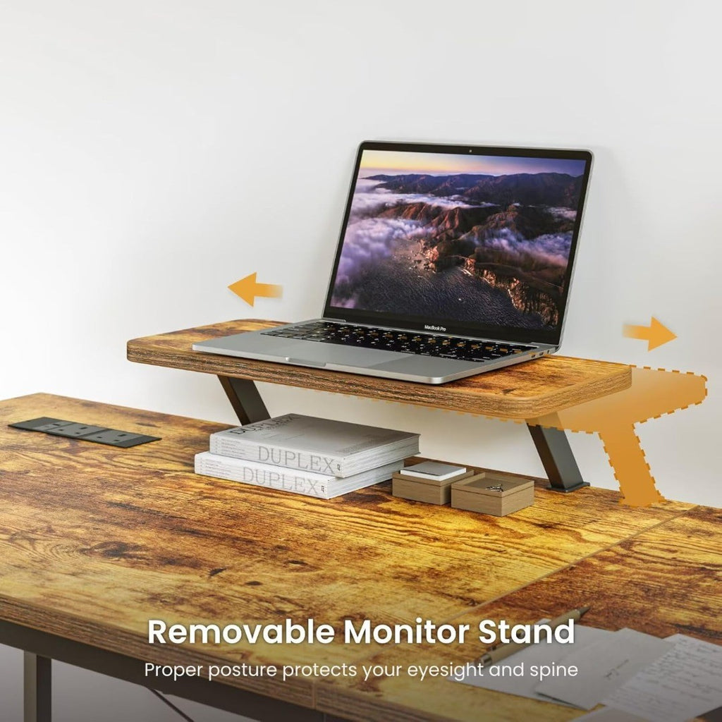 DOMSHOCT Computer Desk with Drawers & Power Outlets, 100*50cm Home Office Desk with Monitor Stand, Gaming Table with Reversible Storage Shelf & Hook, Small PC Workstation for Study Work Write, Brown