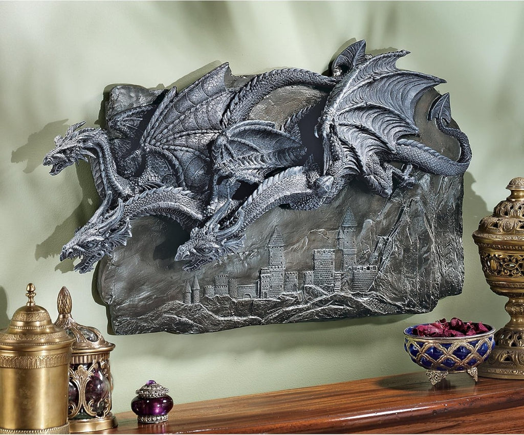 DESIGN TOSCANO Morgoth Castle Dragons 3D Wall Art Grey Resin