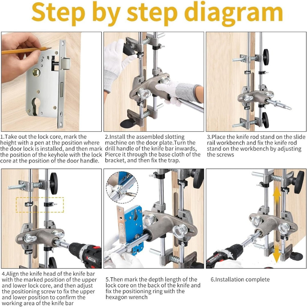 Perfect for DIYers, carpenters, and locksmiths, this Door Lock Mortiser Kit is designed for precision and efficiency. The lock fitting jig and included tungsten steel cutters (18mm, 22mm, 25mm) make installing door locks quick and professional. Ideal for wooden door lock installation and maintenance.