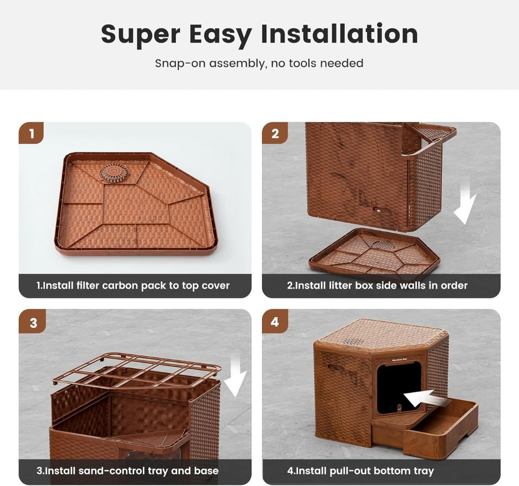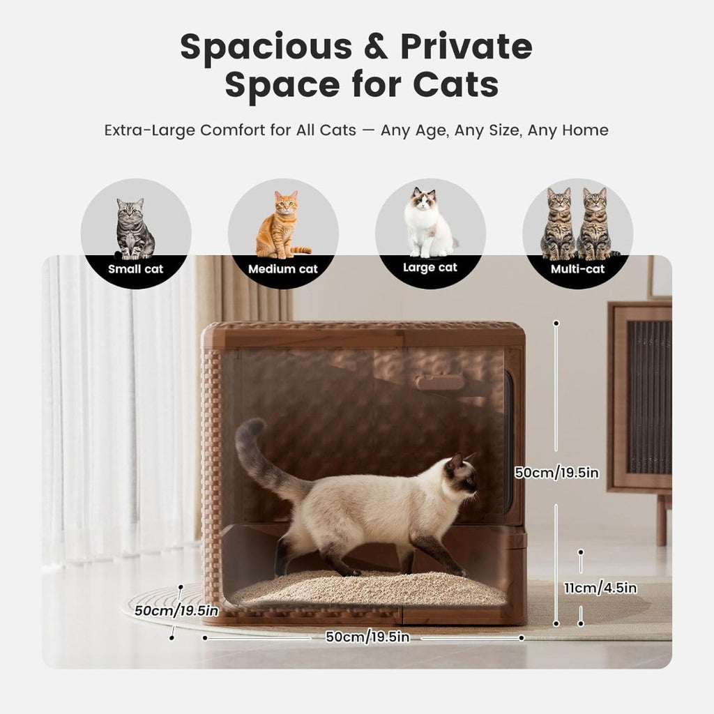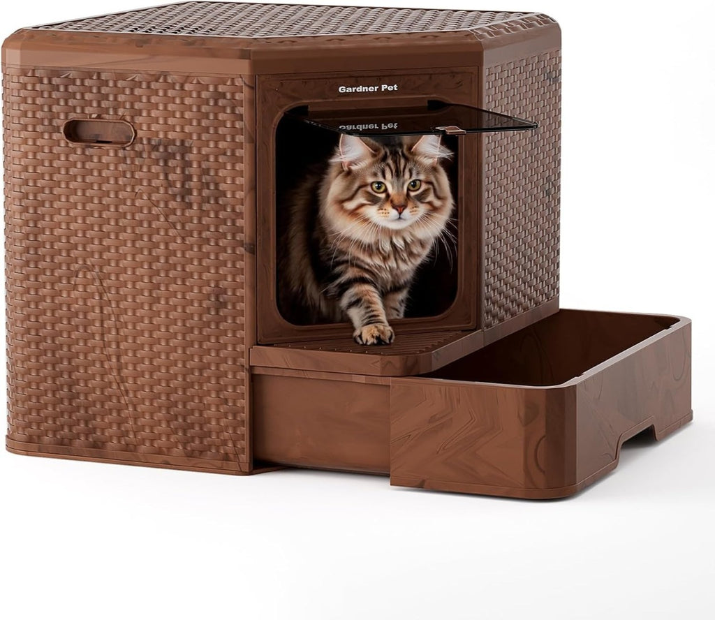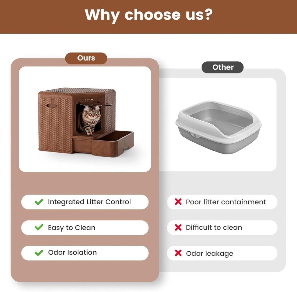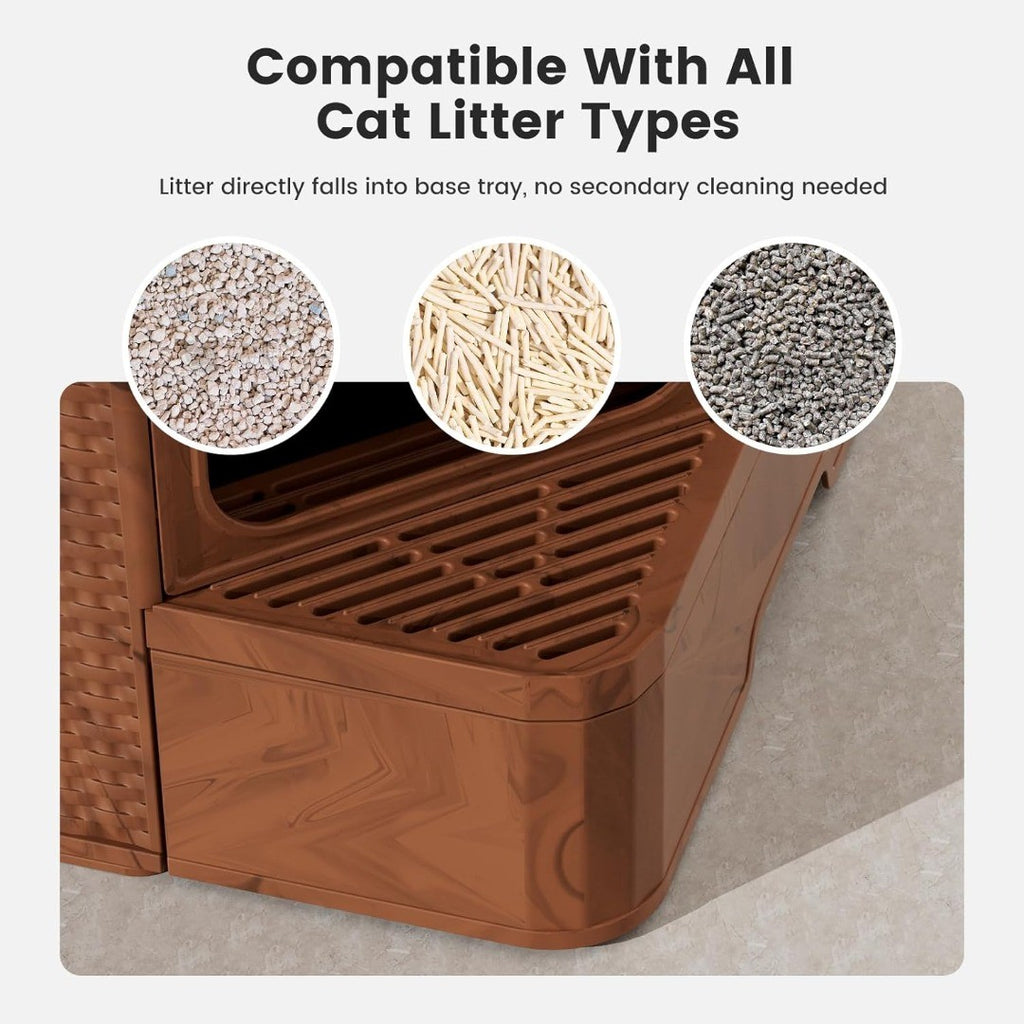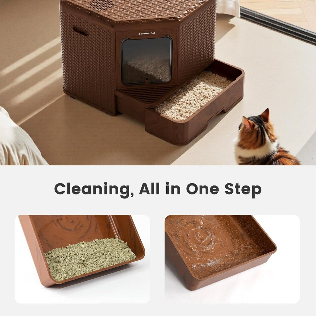 Enclosed Cat Litter Box with Slide-Out Tray Brown Rattan
