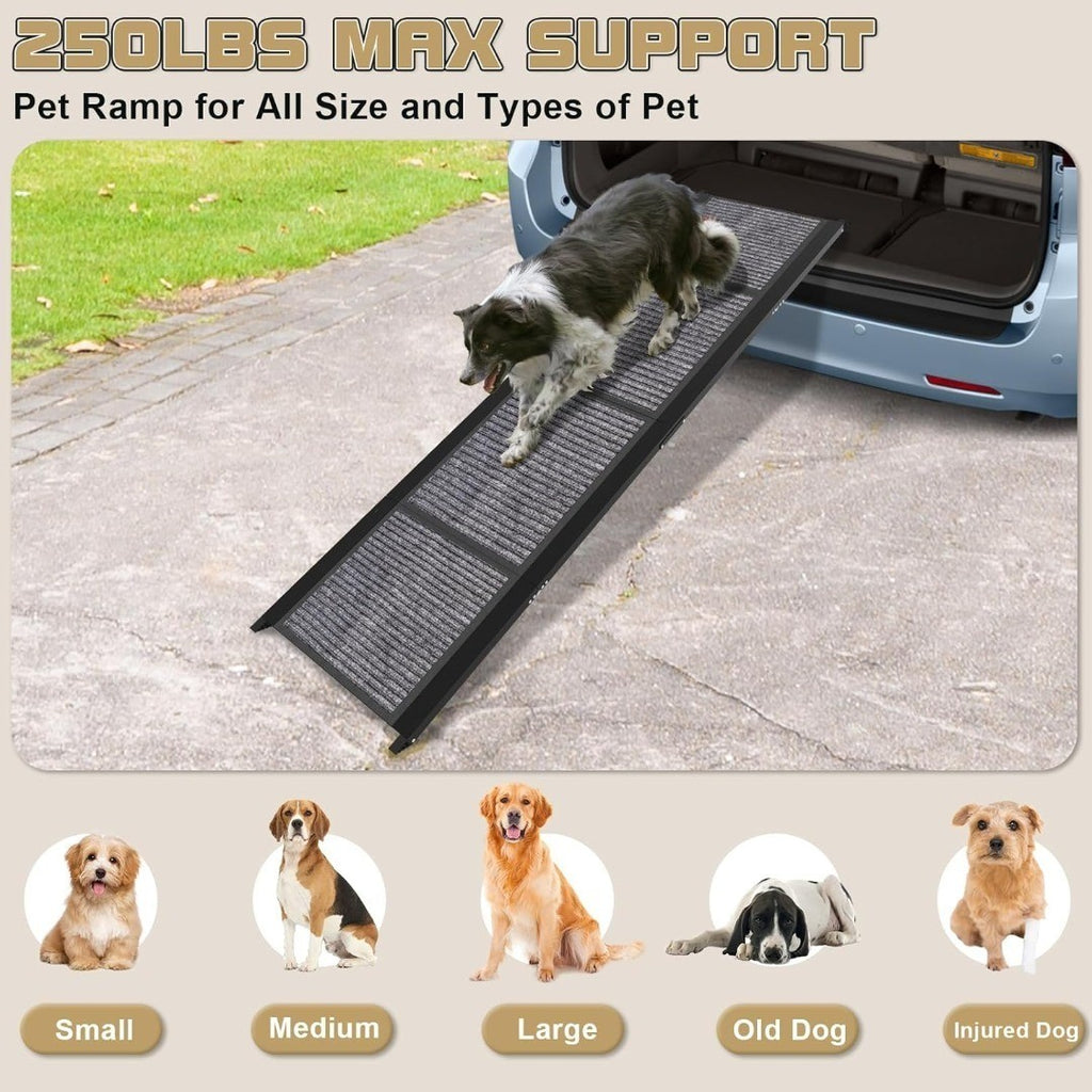 Durable & Superior Load Capacity: The large dogs pet ramp is made of high grade aluminium which makes the folding dog ramp stairs durable, the foldable dog car ramp weighs only 7kg, but strong enough to support up to 100kg, perfect for medium & large dog's indoor outdoor use.