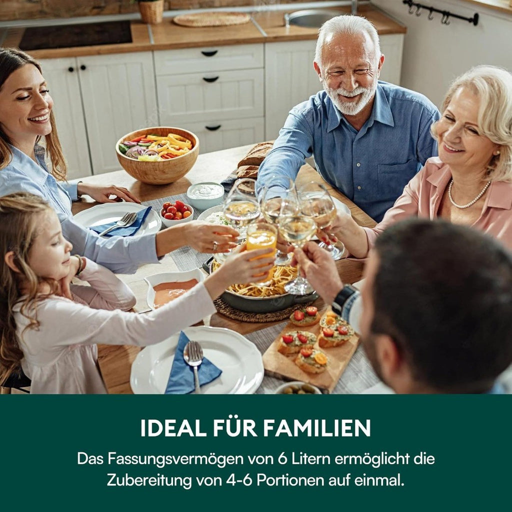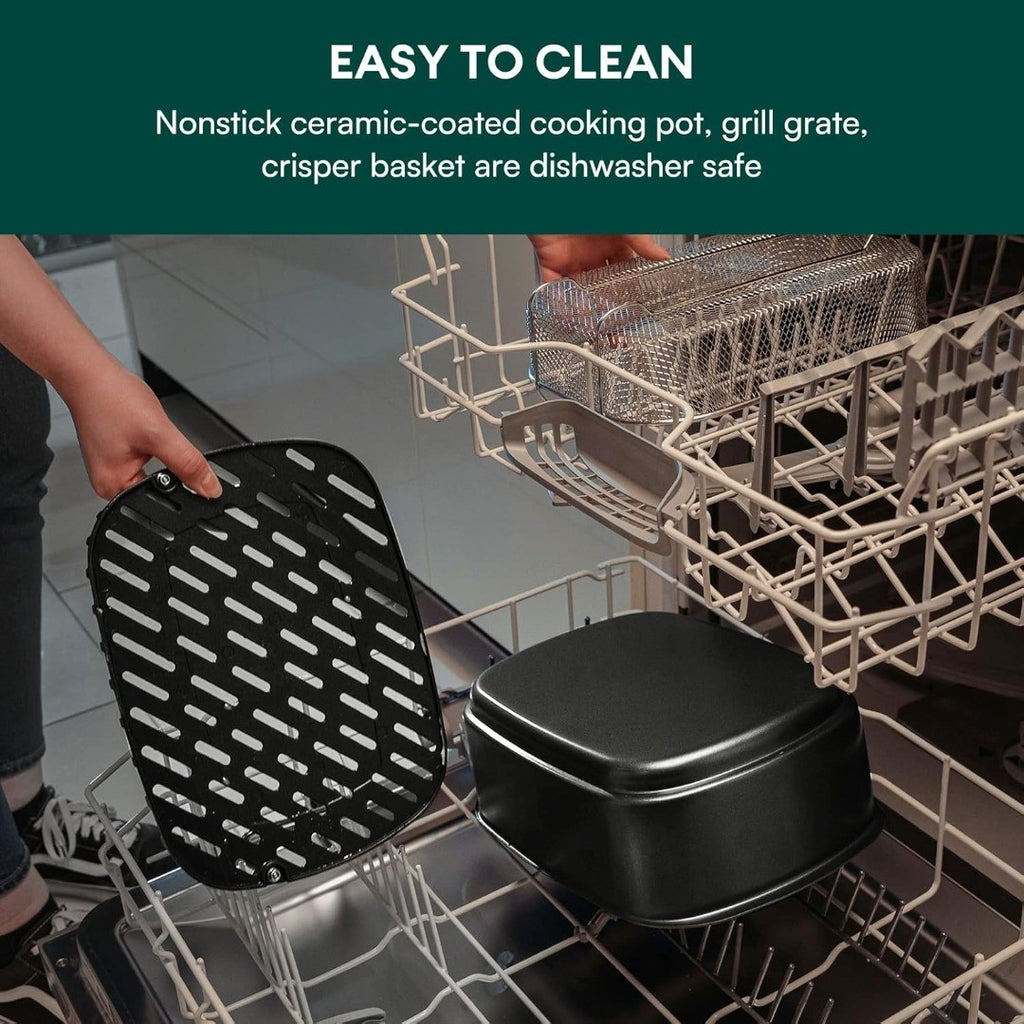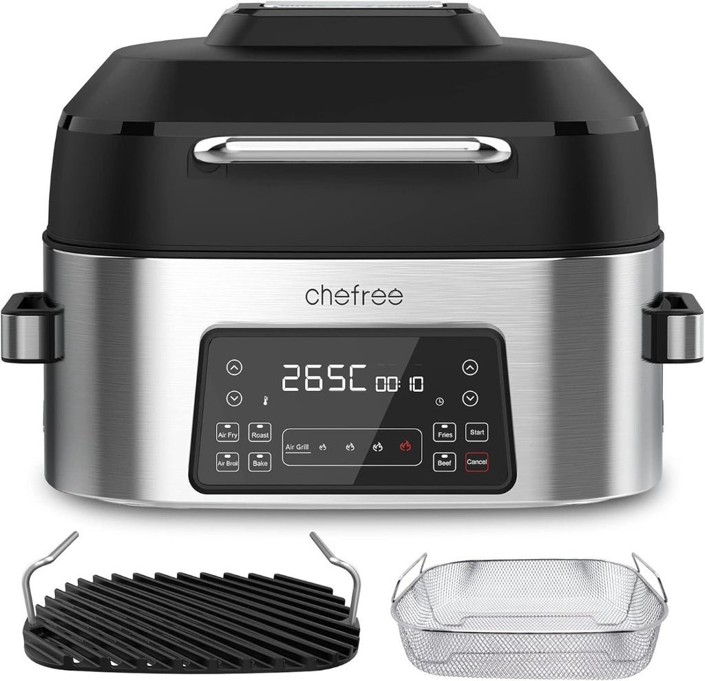 CHEFREE Health Grill and Air Fryer, 6L Large Capacity, 6-in-1 Smart XL Multicooker, Griddle, Roast, Bake & Broil and More, Smokeless, Oiless, Dishwasher Safe, Black/Grey, AFG01