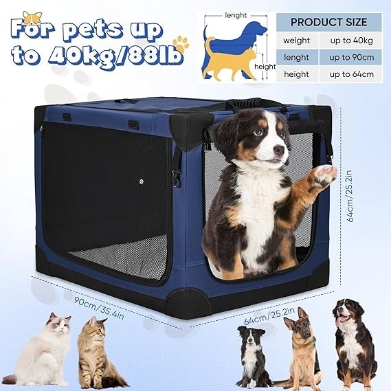 KIDKEN Folding Dog Crate Pet Carrier XL 90cm Dark Blue