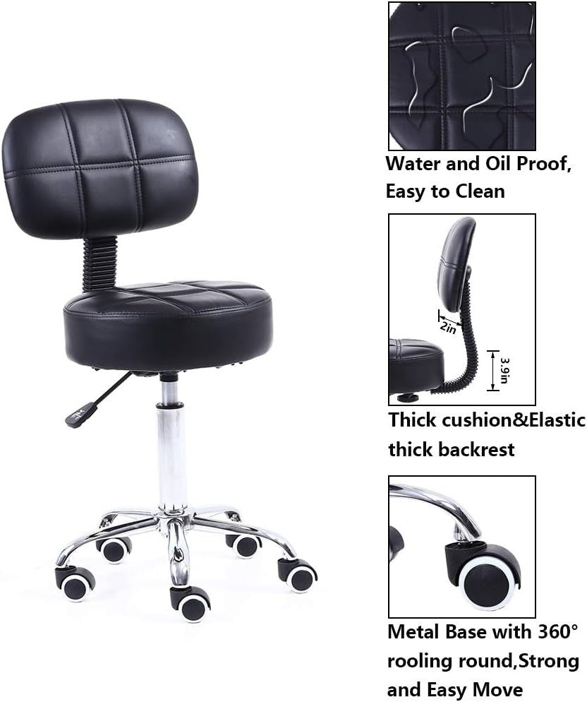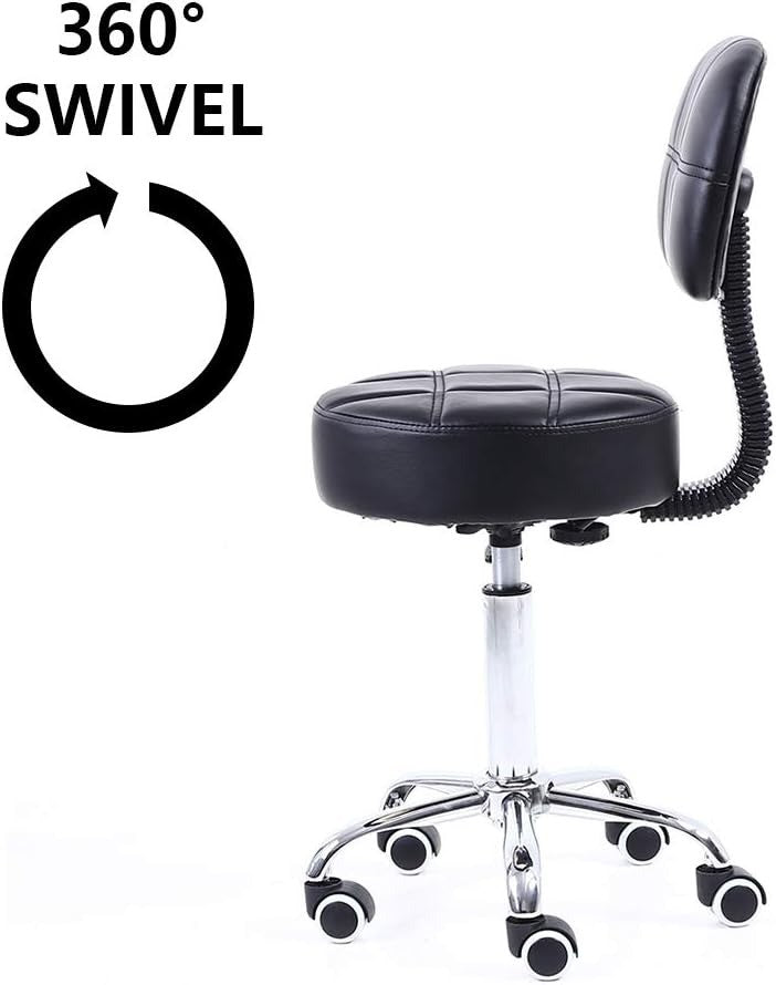 KKTONER Rolling Swivel Stool with Backrest Black