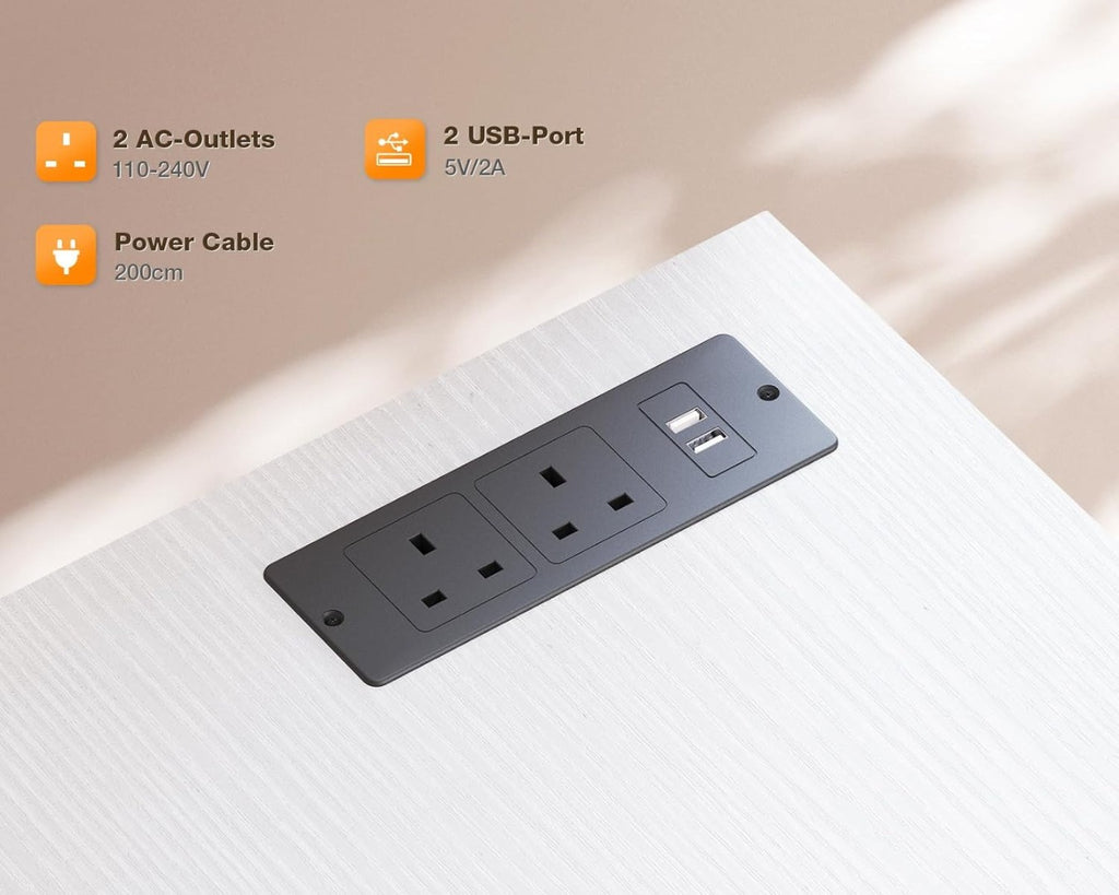 - Built-in Power Outlet: This computer desk is equipped with 2 AC outlets and 2 USB