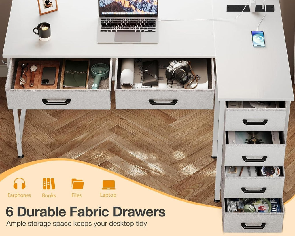 - 6 Drawers for Extra Storage: This corner desk is equipped with 6 fabric